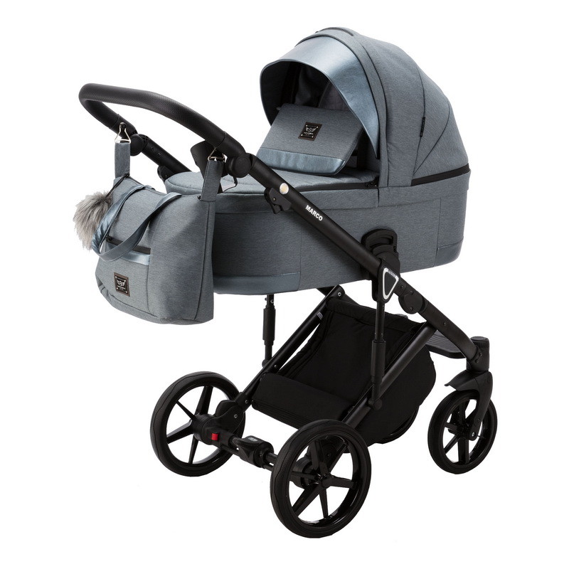 Детская коляска Adamex Marco 2 в 1 GA05 (СЕР-ЗЕЛ ТК.+ СЕР-ЗЕЛ ПЕРЛ КОЖ. ОТДЕЛКА)