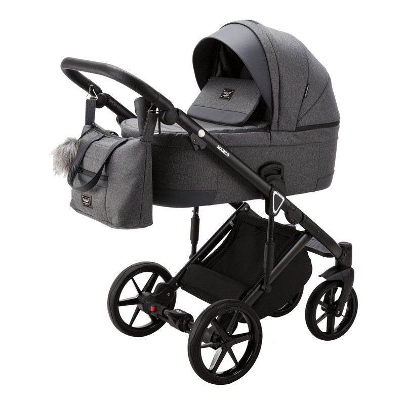 Детская коляска Adamex Marco 3 в 1 GA03 (ГРАФИТ ТК.+ Т.СЕР. КОЖ. ОТДЕЛКА)