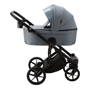 Коляска изготовлена из безопасных материалов, оборудована шасси, которое легко и компактно складывается вместе с прогулочным блоком. В сложенном виде не занимает много места. Внутренняя и внешняя обивка произведены из качественного текстиля. Люлька просторная, имеет вентиляцию дна, регулируемый подголовник и небольшой вес. Прогулочный блок оборудован спинкой с регулировкой по высоте, ремнями безопасности с мягкими накладками.