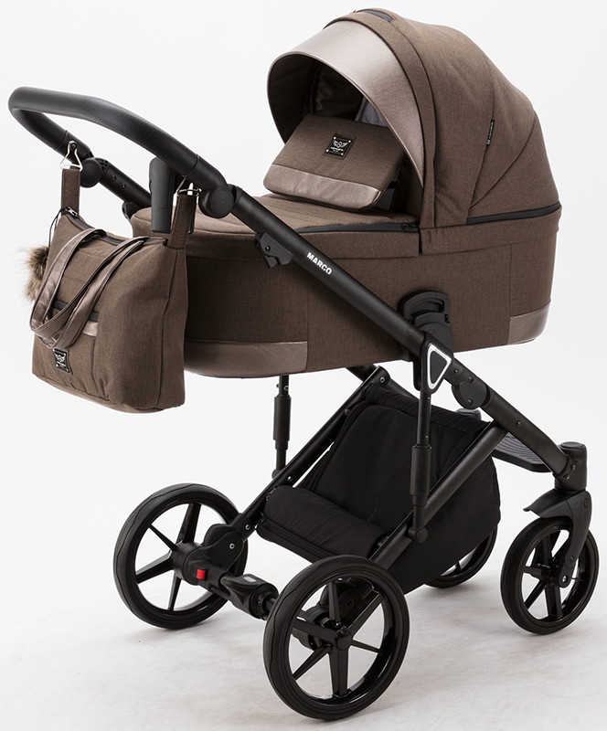 Детская коляска Adamex Marco 3 в 1 GA10 (ШОКОЛАД.ТК.+ ШОК. КОЖ. ОТДЕЛКА)