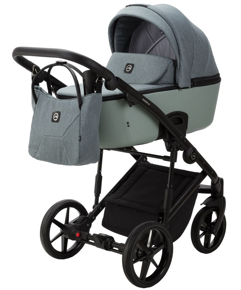Детская коляска Adamex Mobi 2 в 1 M-PS72 (СЕРЫЙ+СЕРО-ЗЕЛЕНАЯ КОЖА)