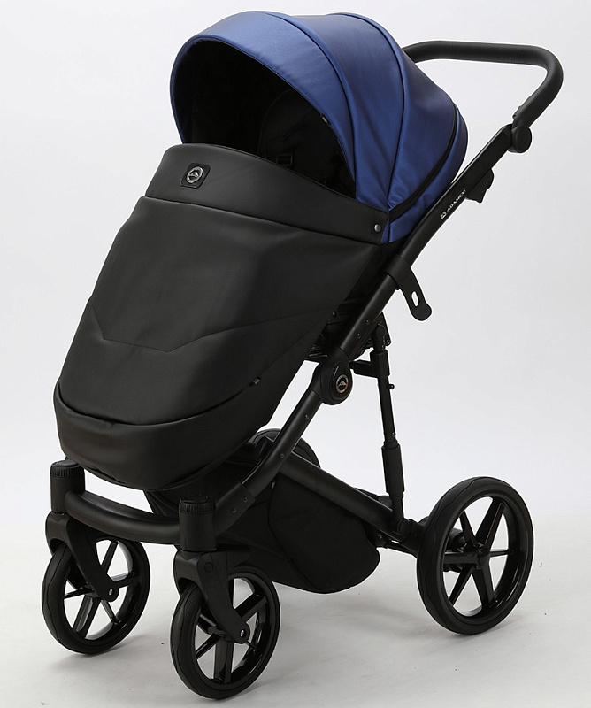 Детская коляска Adamex Mobi Deluxe 2 в 1 M-SD13 (СИНИЙ ПЕРЛ+ЧЕРНАЯ КОЖА)