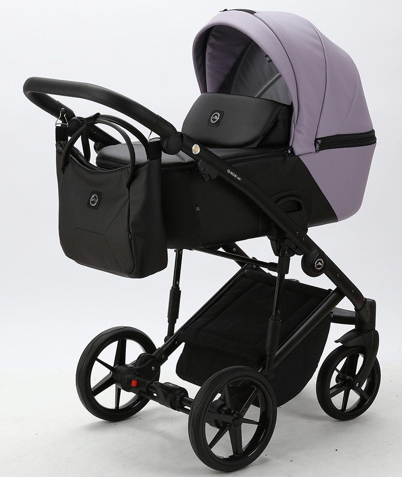Детская коляска Adamex Mobi Deluxe 2 в 1 M-SD20 (СИРЕНЬ+ЧЕРНАЯ КОЖА)
