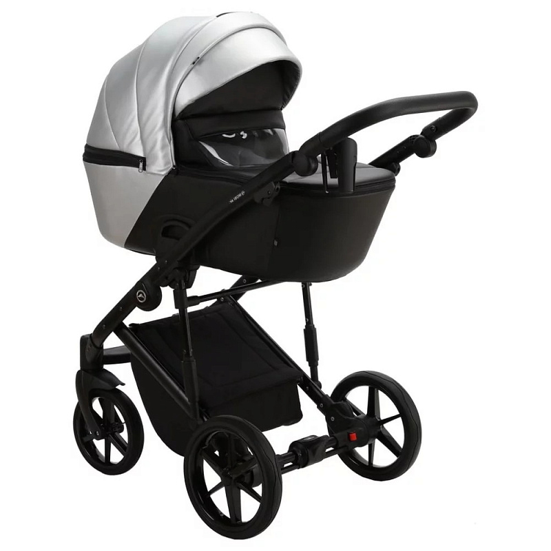 Детская коляска Adamex Mobi Deluxe 3 в 1 M-SD09 (СЕРЕБРИСТЫЙ+ЧЕРН.КОЖА)