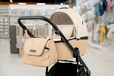 Сумка для мамы выполнена из эко-кожи. В комплект входят – подстаканник, универсальный дождевик, универсальная анти-москитная сетка.