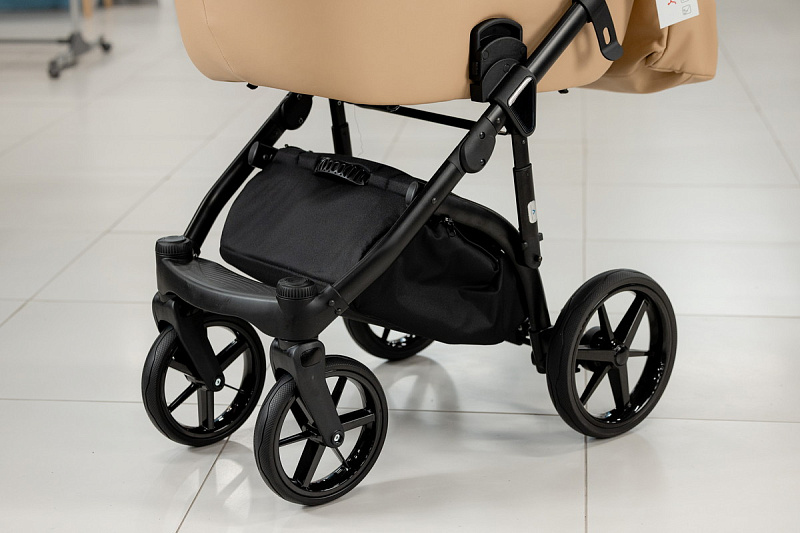 Рама выполнена из сплава алюминия. Рама оборудована ручкой для переноски в сложенном положении.Ручка, регулируемая по высоте. Задняя колесная база оборудована тормозной системой.Задняя колесная база оборудована амортизаторами с возможностью регулировать жесткости.Рама имеет дополнительные центральные амортизаторы с возможностью блокировки.Колеса выполненыиз вспененной резины не требующие подкачки.Передние колеса поворотные с возможность блокировки в прямом положении.