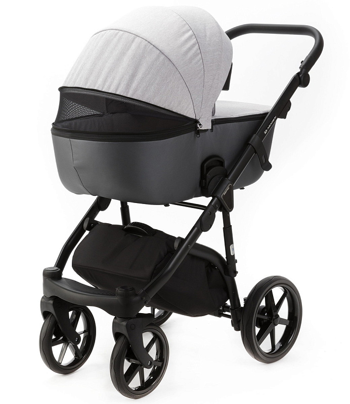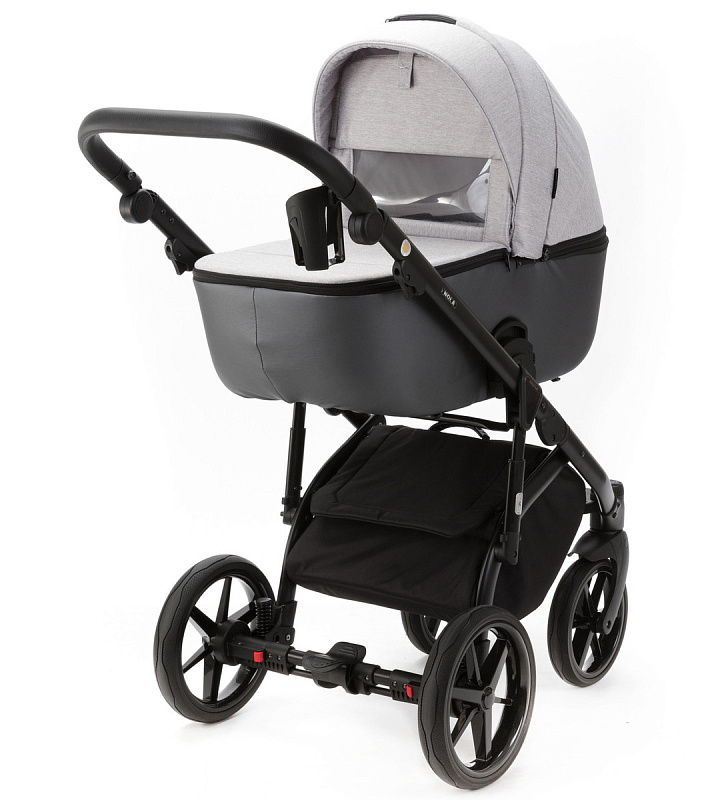 Корпус люльки пластиковый, обтянут эко-кожей. В донышко люльки встроено регулируемое вентиляционное окно. Люлька оборудована регулируемым по высоте подголовником, регуляция расположена с внешней стороны.Внутренняя обивка выполнена из хлопковой ткани.Люлька реверсивная, ее можно установить в положение «ребенок лицом к родителю», «ребенок лицом к направлению движения».Капюшон люльки 3-х сегментный капюшон с козырьком от солнца и дополнительным 4-м сегментом на молнии, под которым расположена анти-москитная сетка для проветривания. В капюшон встроена ручка для переноски люльки, ручка расположена под молнией.Накидка крепится к люльке с помощью молнии. Накидка оснащена откидным клапаном под клапаном расположено смотровое окно.