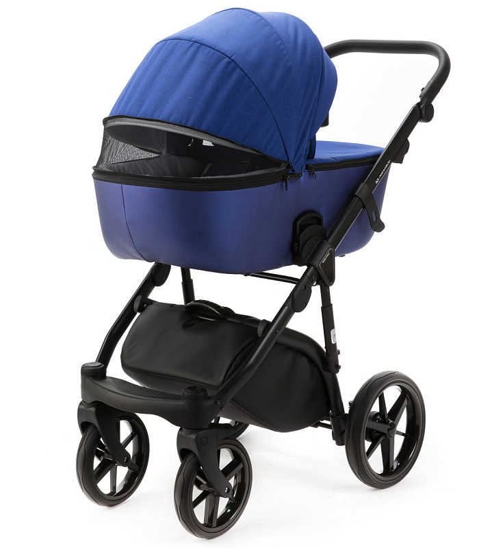 Корпус люльки пластиковый, обтянут эко-кожей. В донышко люльки встроено регулируемое вентиляционное окно. Люлька оборудована регулируемым по высоте подголовником, регуляция расположена с внешней стороны.Внутренняя обивка выполнена из хлопковой ткани.Люлька реверсивная, ее можно установить в положение «ребенок лицом к родителю», «ребенок лицом к направлению движения».Капюшон люльки 3-х сегментный капюшон с козырьком от солнца и дополнительным 4-м сегментом на молнии, под которым расположена анти-москитная сетка для проветривания. В капюшон встроена ручка для переноски люльки, ручка расположена под молнией.Накидка крепится к люльке с помощью молнии. Накидка оснащена откидным клапаном под клапаном расположено смотровое окно.