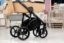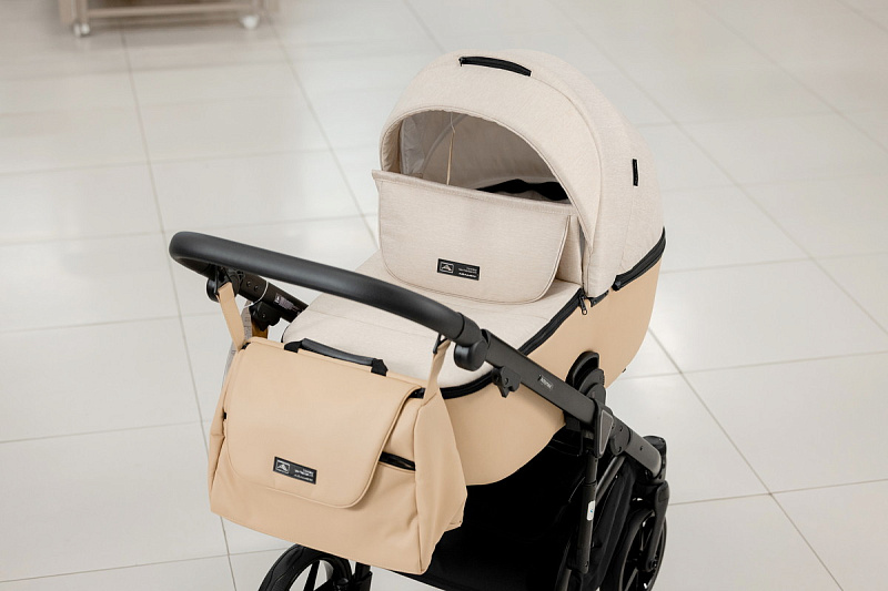 Сумка для мамы выполнена из эко-кожи. В комплект входят – подстаканник, универсальный дождевик, универсальная анти-москитная сетка.