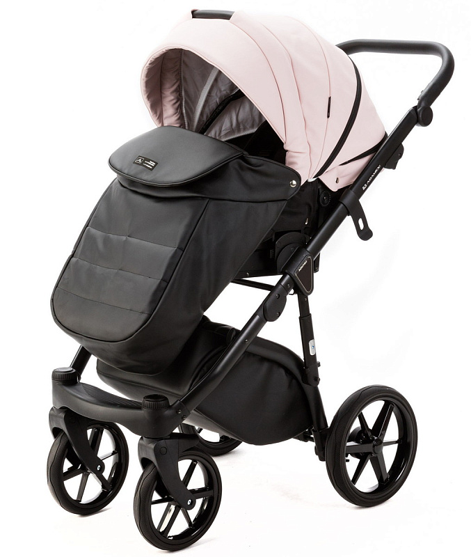 Детская коляска Adamex Nola Deluxe 2 в 1 N-SD102 (РОЗОВ.ПУДРА КОЖА + ЧЕРН.КОЖА)