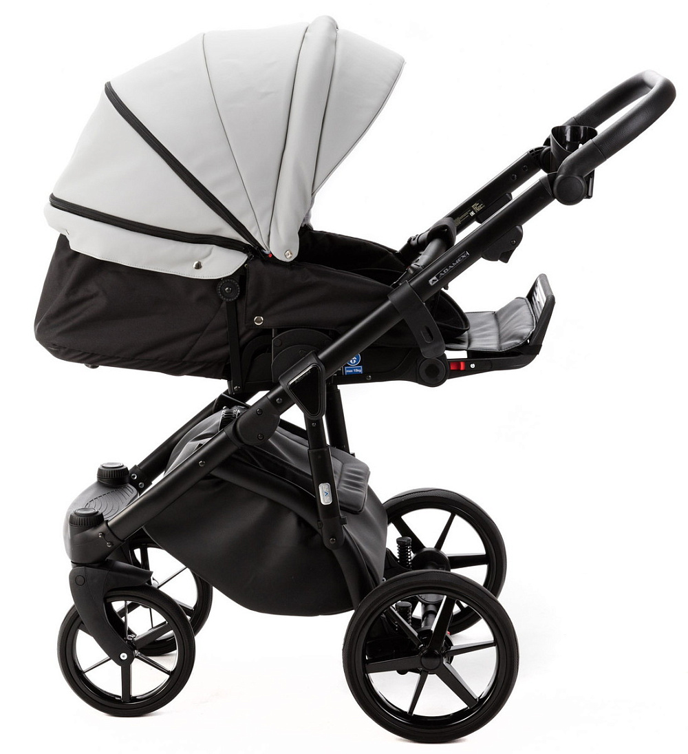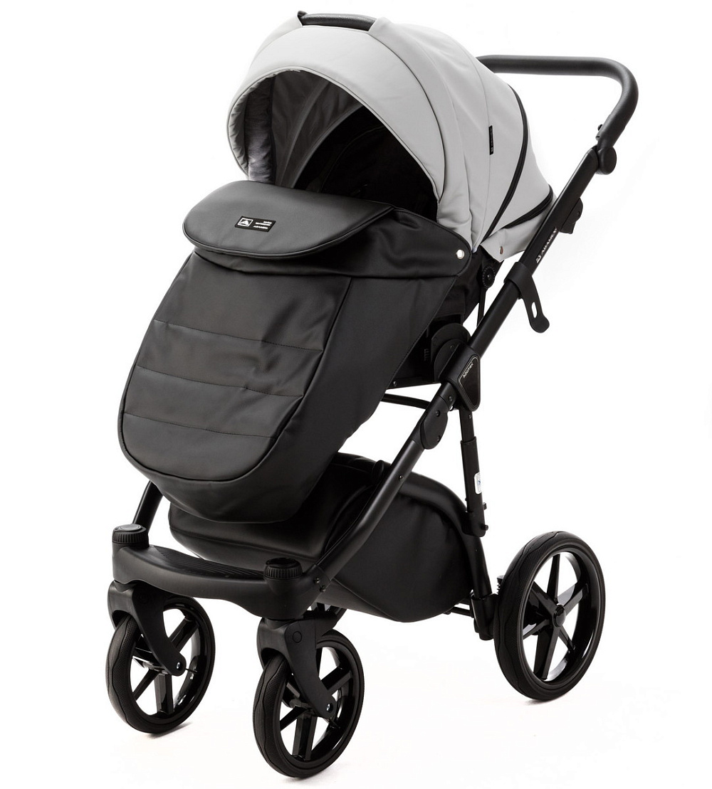 Детская коляска Adamex Nola Deluxe 2 в 1 N-SD107 (СВ.СЕР.КОЖА + ЧЕРН.КОЖА)