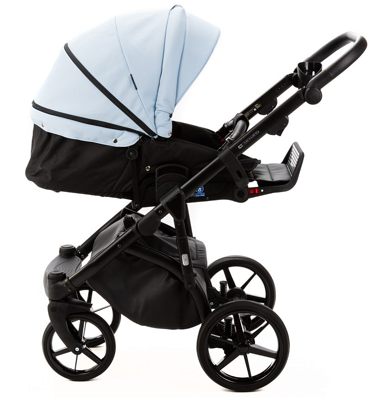 Детская коляска Adamex Nola Deluxe 2 в 1 N-SD112 (ГОЛУБАЯ КОЖА + ЧЕРН.КОЖА)