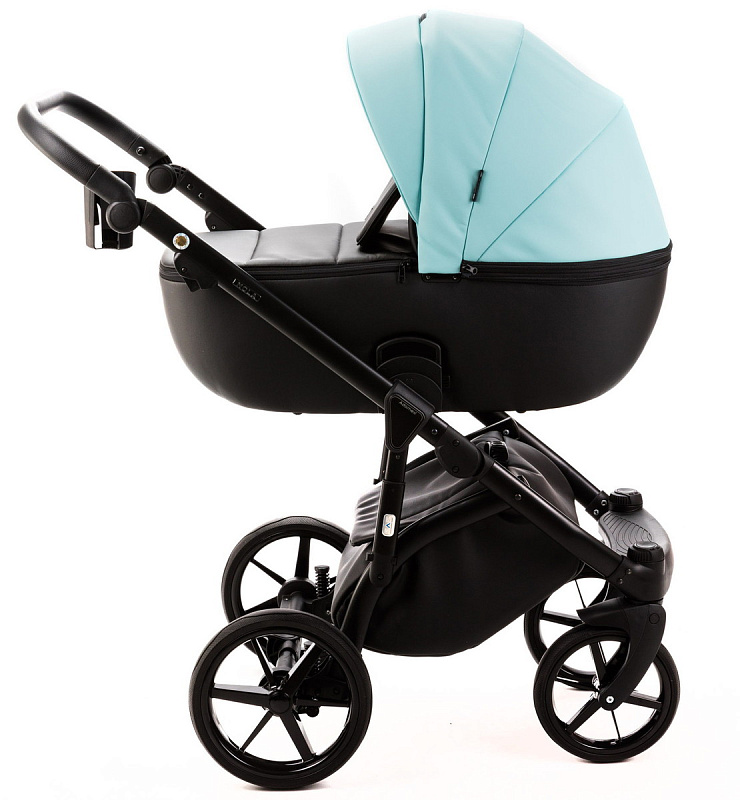 Детская коляска Adamex Nola Deluxe 3 в 1 N-SD111 (СВ.БИРЮЗОВАЯ.КОЖА + ЧЕРН.КОЖА)
