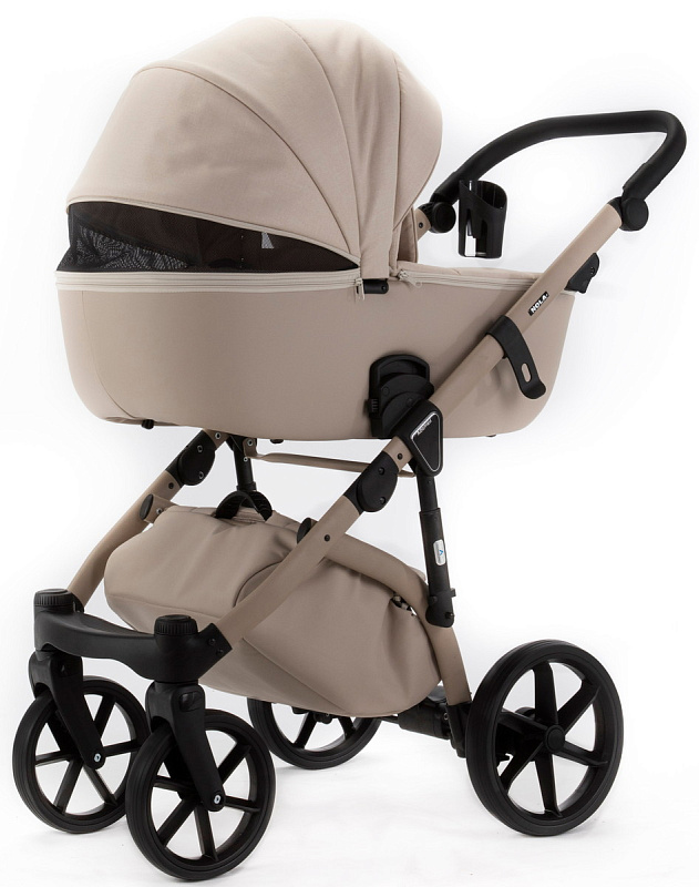 Корпус люльки пластиковый, обтянут эко-кожей. В донышко люльки встроено регулируемое вентиляционное окно. Люлька оборудована регулируемым по высоте подголовником, регуляция расположена с внешней стороны.