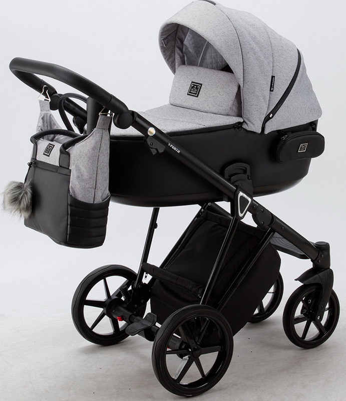 Детская коляска Adamex Porto 2 в 1 PO-PS12 (СВ.СЕР.БЕРЕЗКА+ЧЕРН.КОЖА)