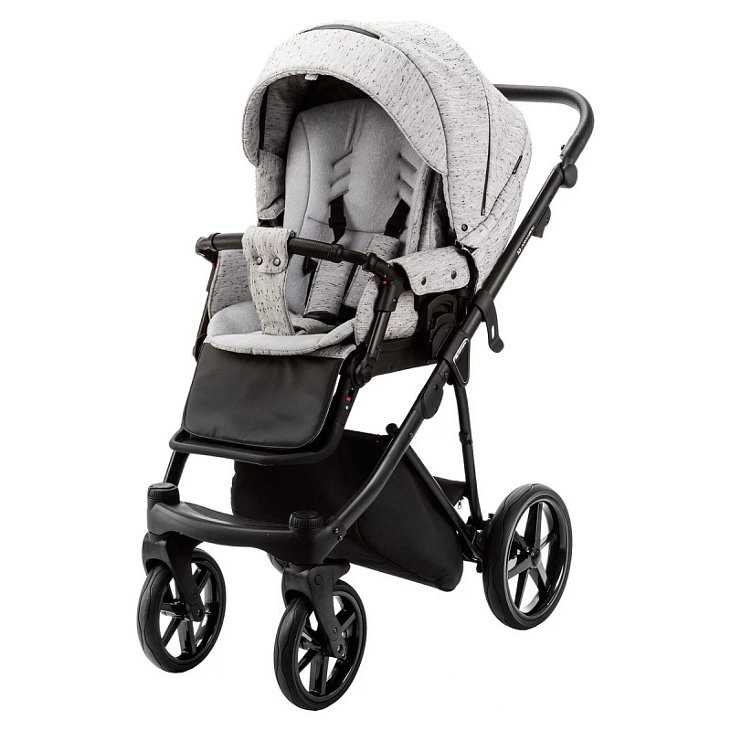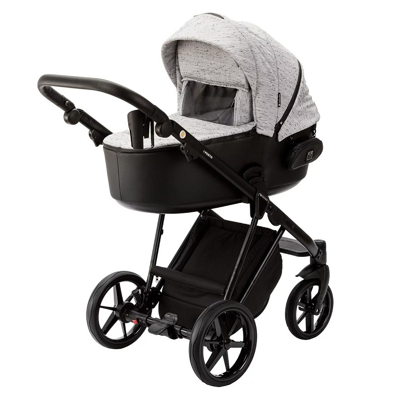 Детская коляска Adamex Porto 2 в 1 PO-PS12B (СВ.СЕР.БЕРЕЗКА+ЧЕРНАЯ КОЖА)