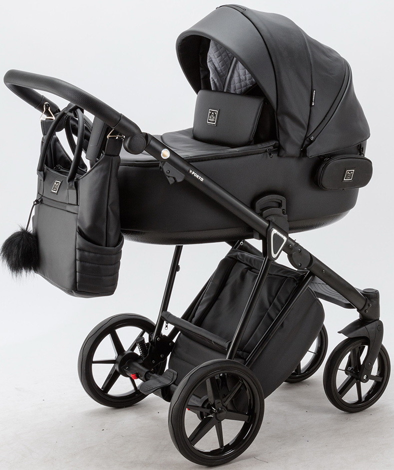 Детская коляска Adamex Porto Deluxe 2 в 1 PO-SA02 (ЧЁРН.КОЖА)