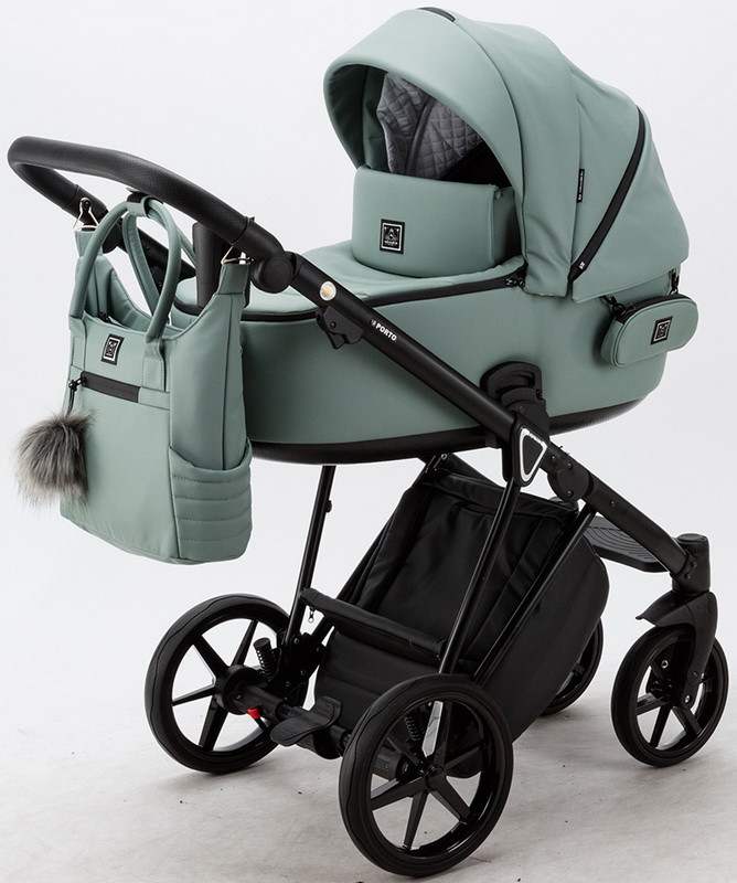 Детская коляска Adamex Porto Deluxe 3 в 1 PO-SA20 (СЕР-ЗЕЛЁН.КОЖА)