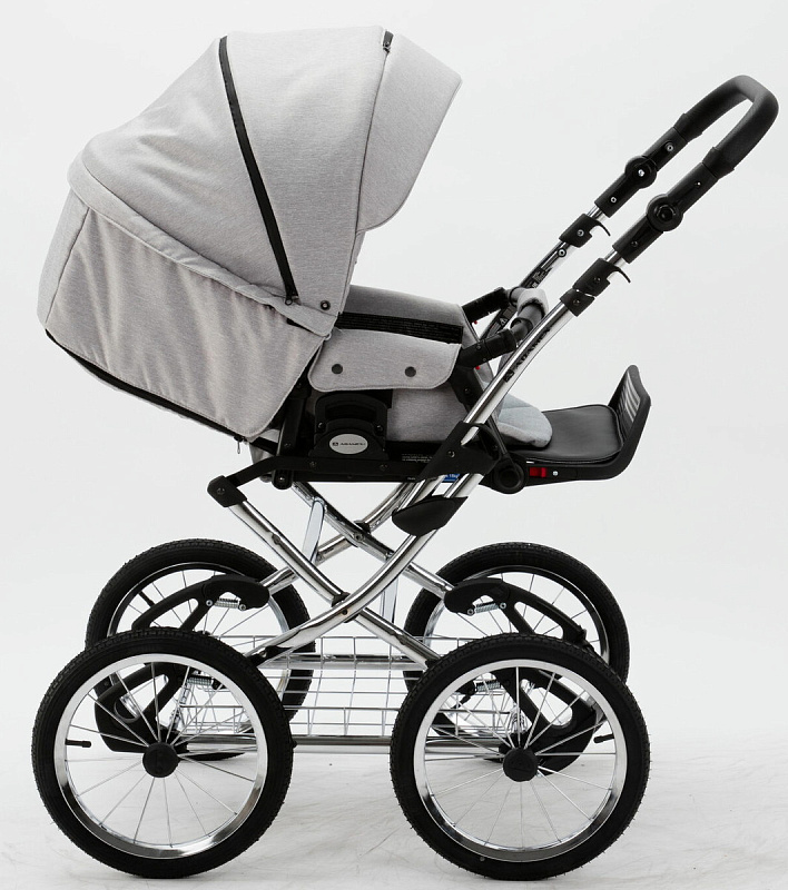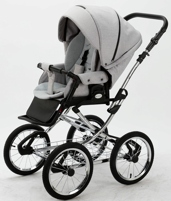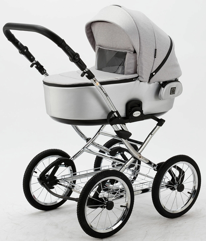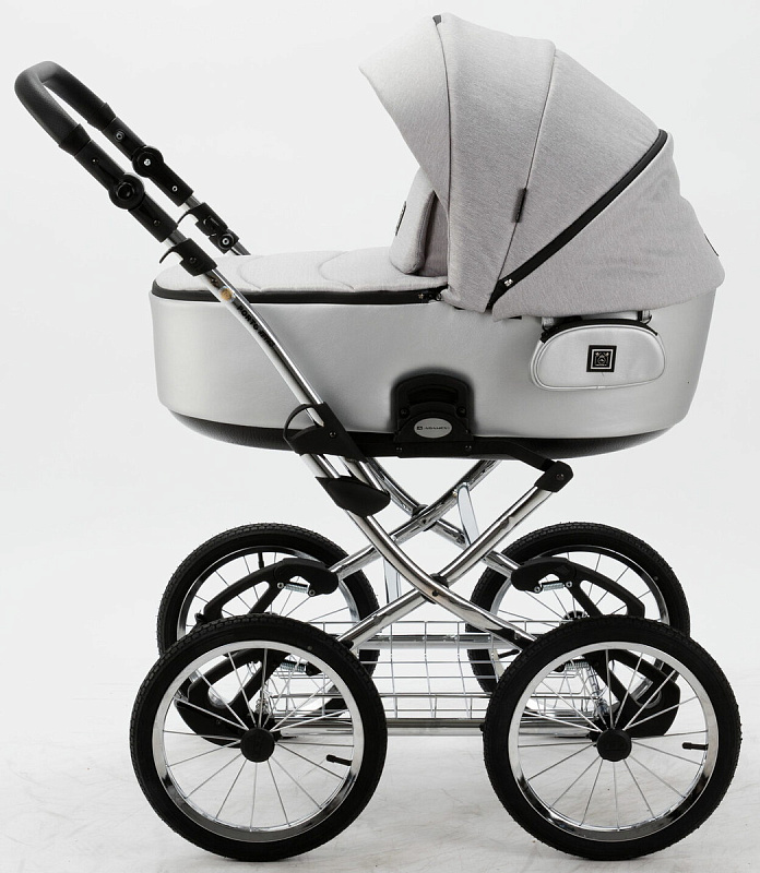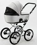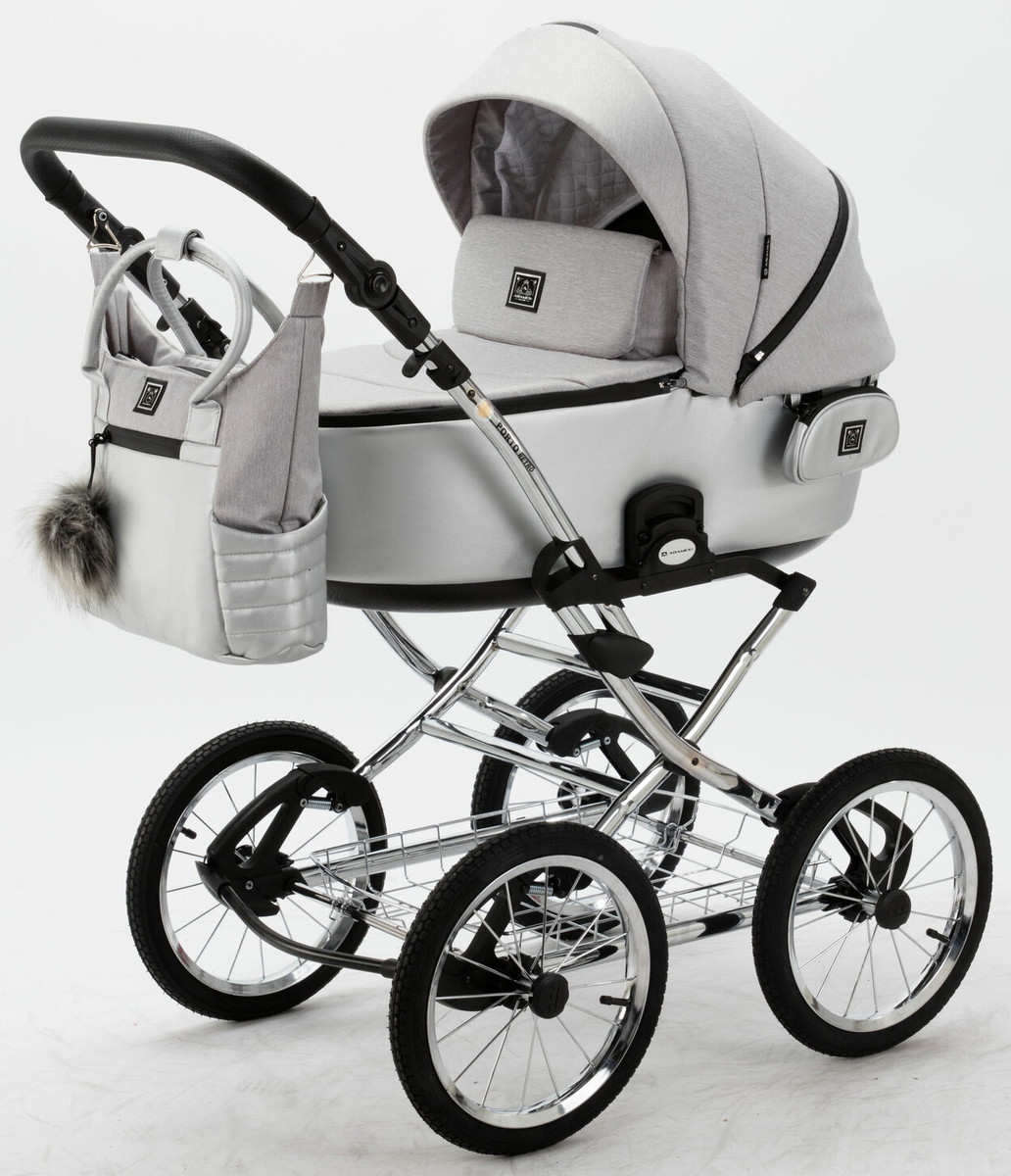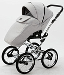 Детская коляска Adamex Porto Retro 2 в 1 PO-PS89 (СВ.СЕРЫЙ+СЕРЕБРИСТАЯ КОЖА)