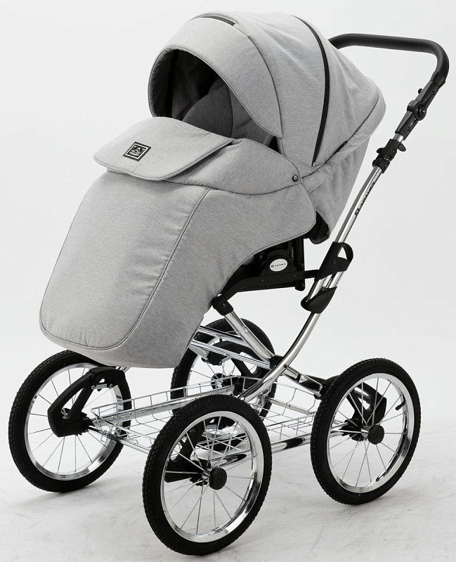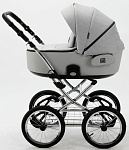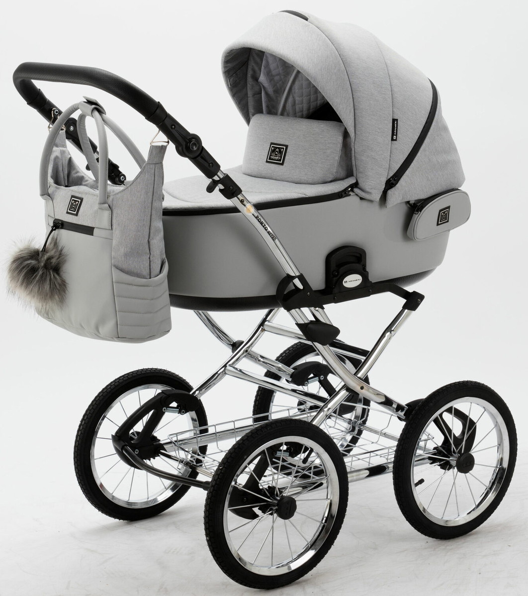 Детская коляска Adamex Porto Retro 3 в 1 PO-PS11 (СВ.СЕРЫЙ+СВ.СЕРАЯ КОЖА)