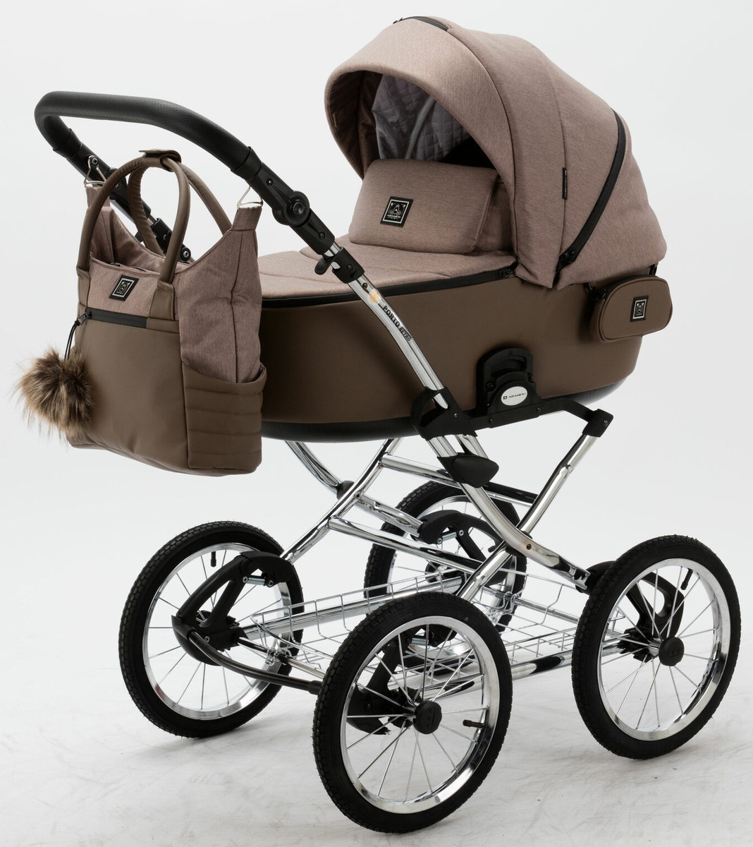 Детская коляска Adamex Porto Retro 3 в 1 PO-PS15 (Т.БЕЖ+Т.БЕЖА КОЖА)