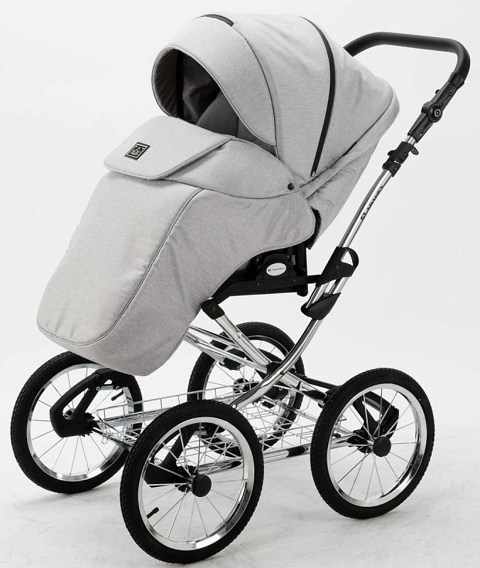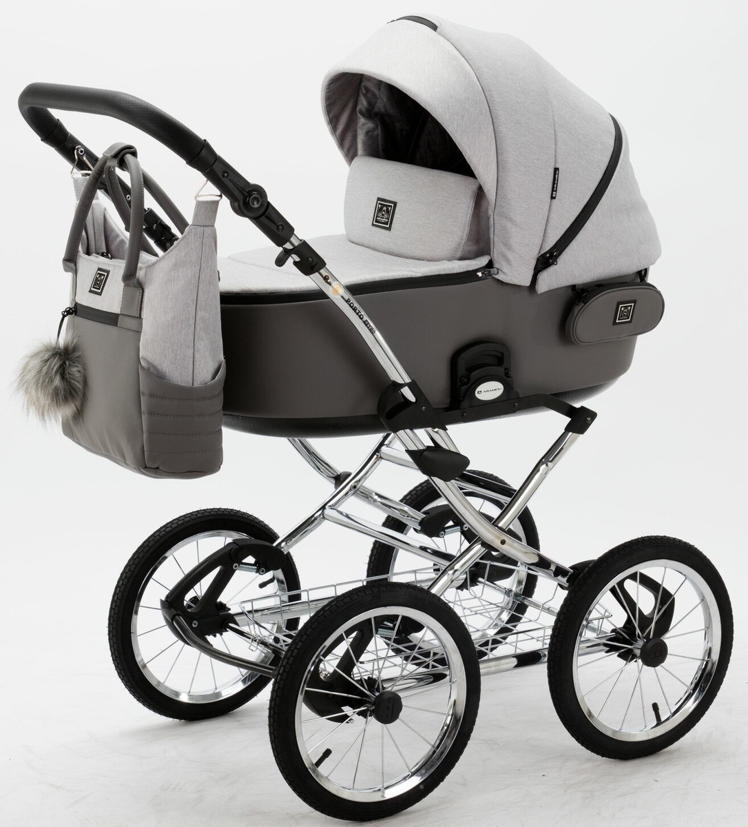 Детская коляска Adamex Porto Retro 3 в 1 PO-PS79 (СВ.СЕРЫЙ+Т.СЕРАЯ КОЖА)