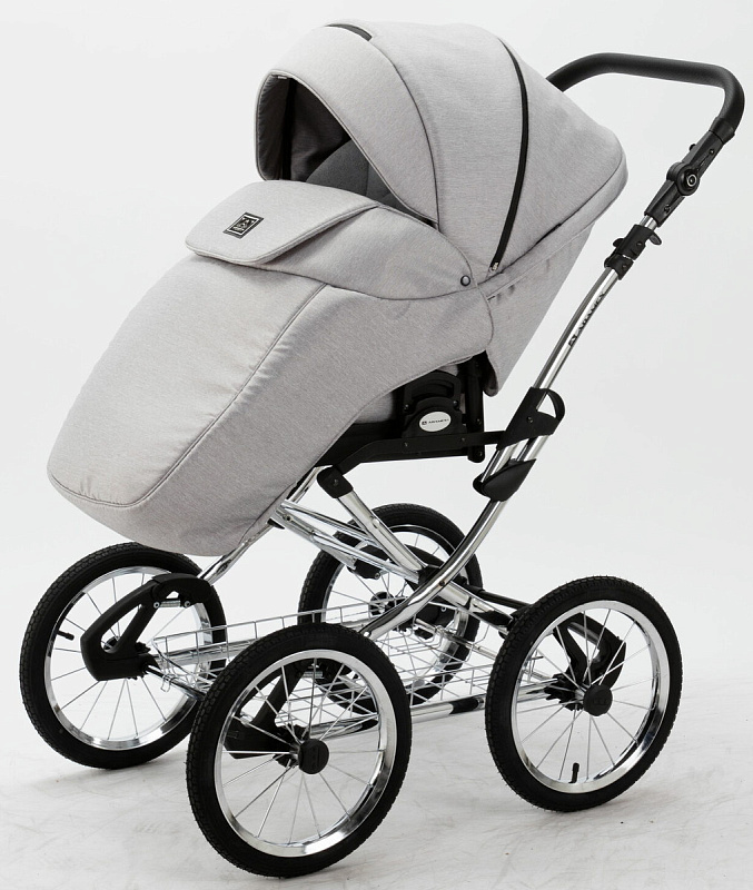 Детская коляска Adamex Porto Retro 3 в 1 PO-PS89 (СВ.СЕРЫЙ+СЕРЕБРИСТАЯ КОЖА)