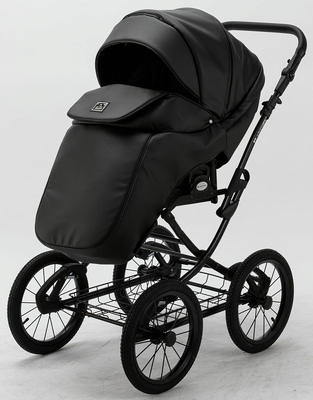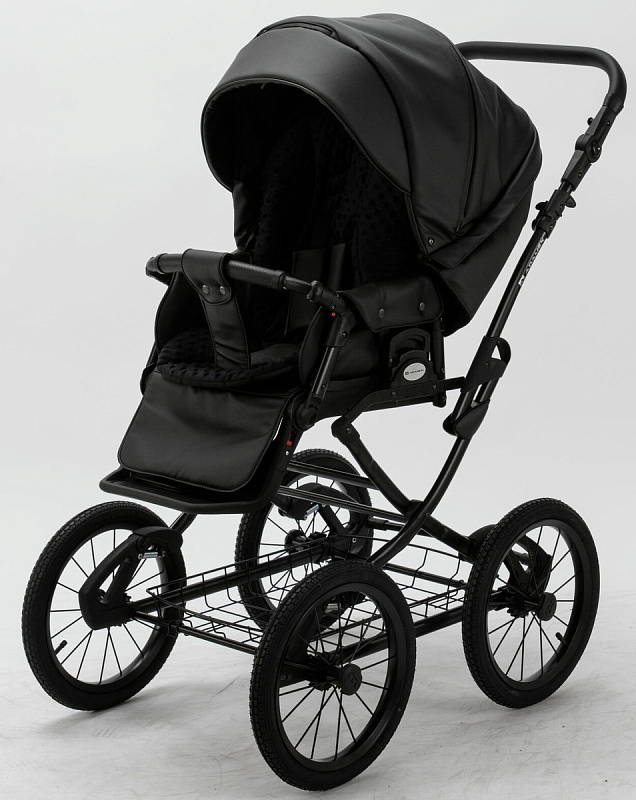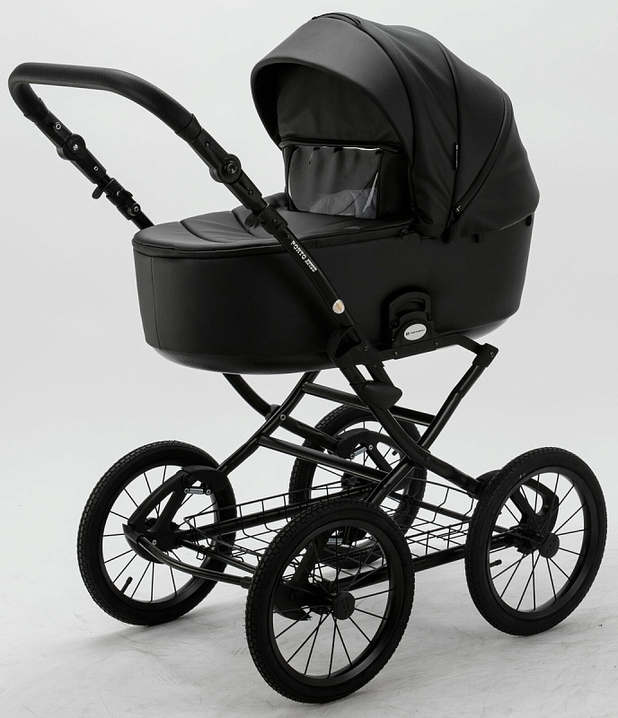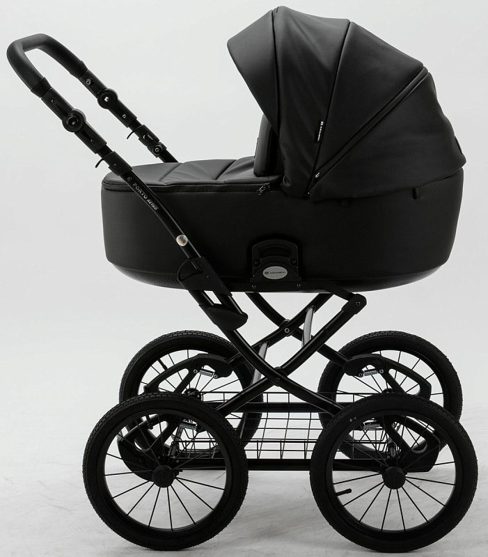 Детская коляска Adamex Porto Retro Deluxe 2 в 1 PO-SA02 (ЧЕРН.КОЖА)