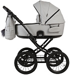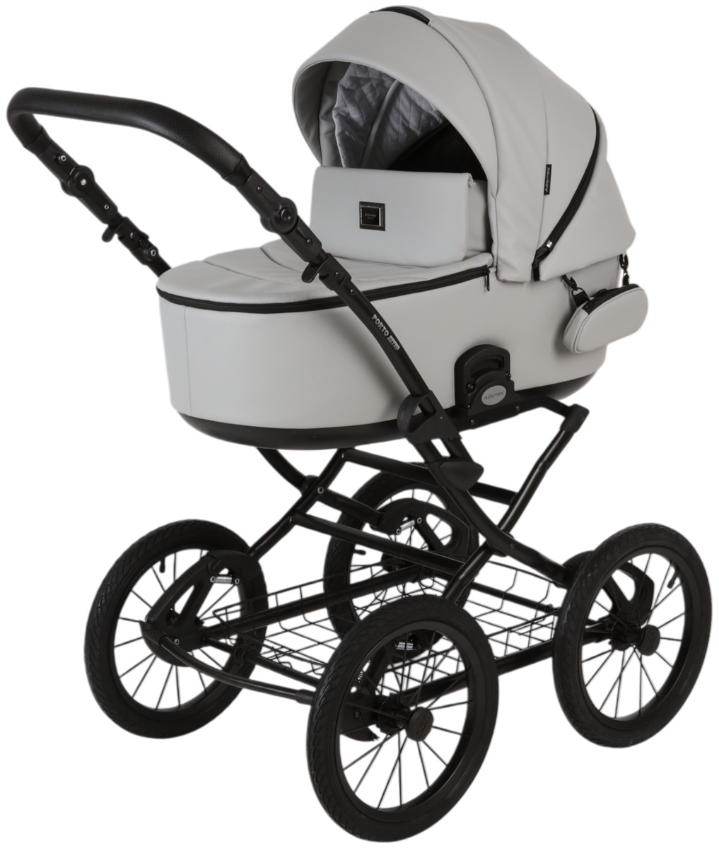 Детская коляска Adamex Porto Retro Deluxe 2 в 1 PO-SA03 BLACK (СВ. СЕРАЯ КОЖА)