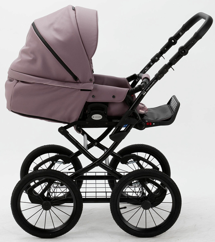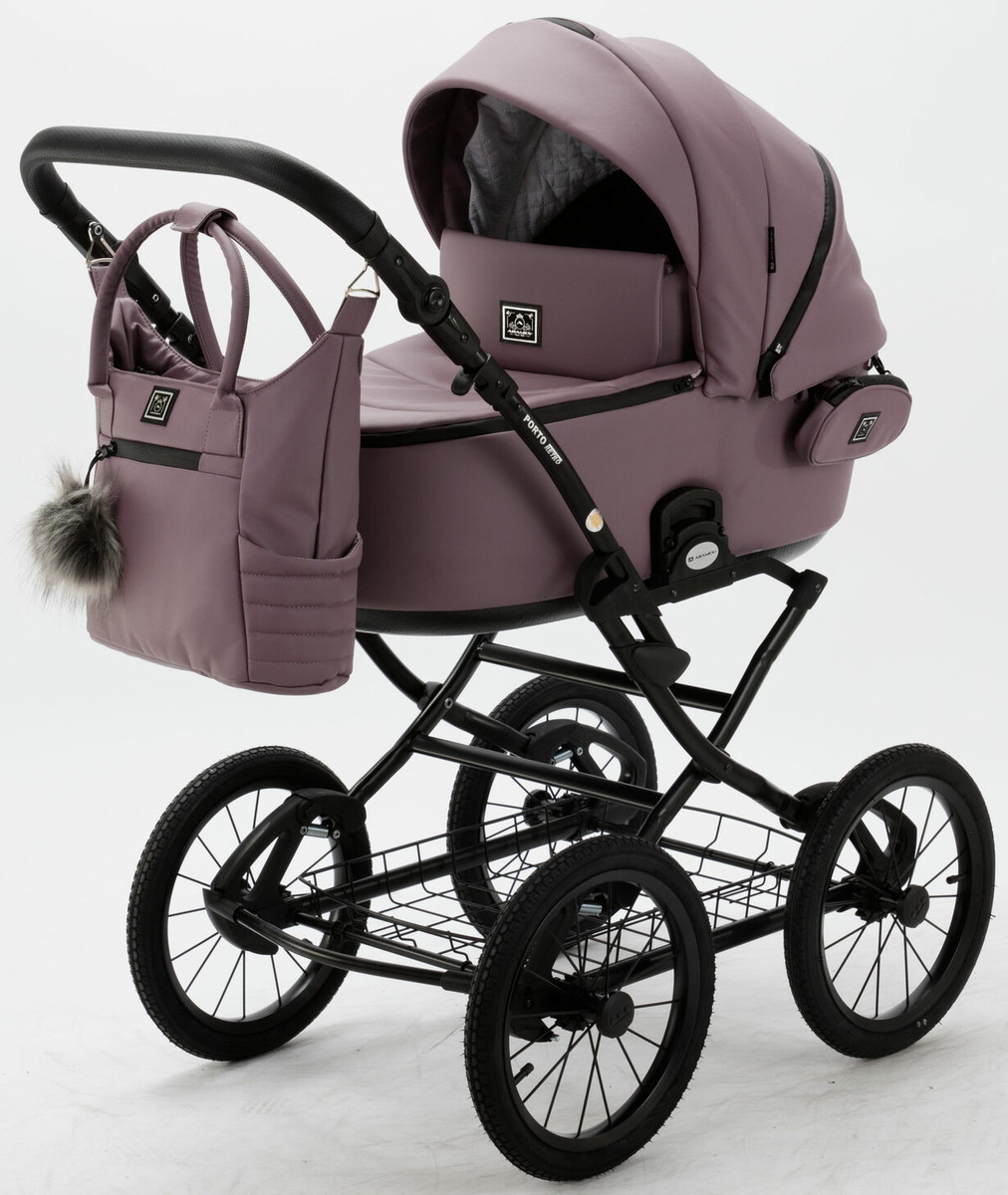 Детская коляска Adamex Porto Retro Deluxe 2 в 1 PO-SA14 (СИРЕНЬ КОЖА)