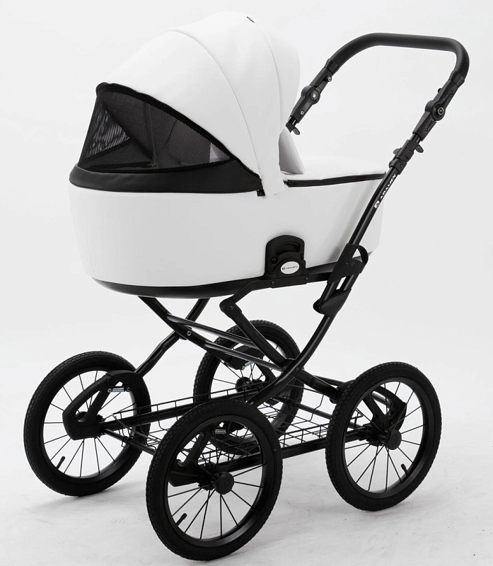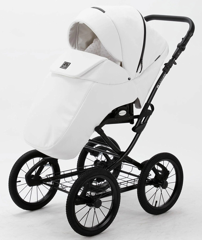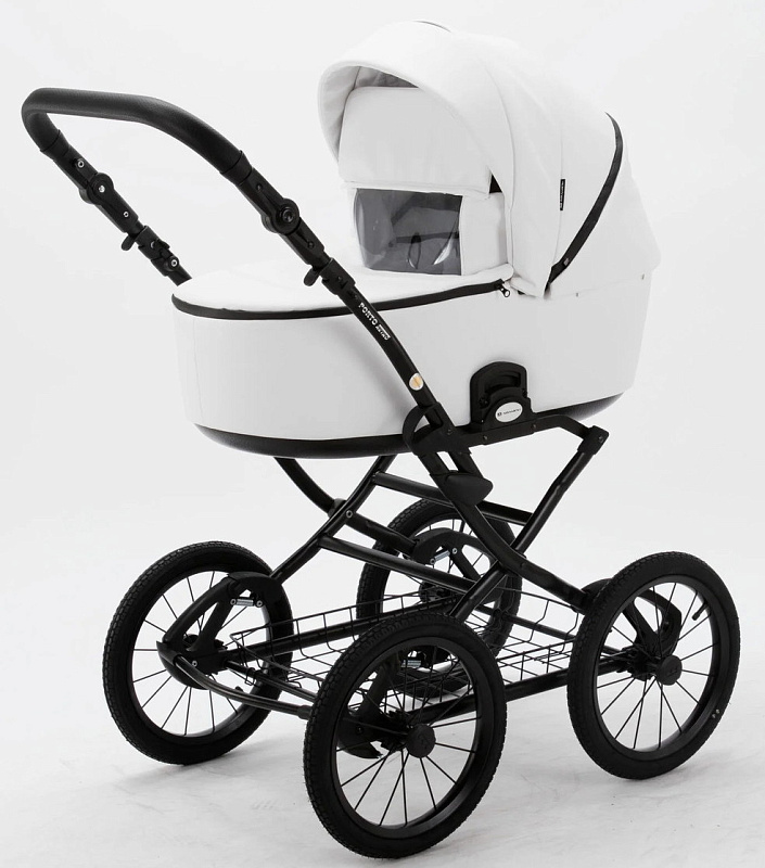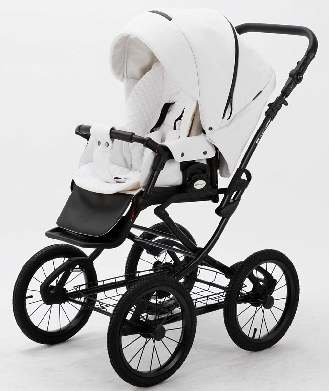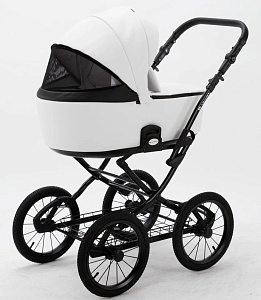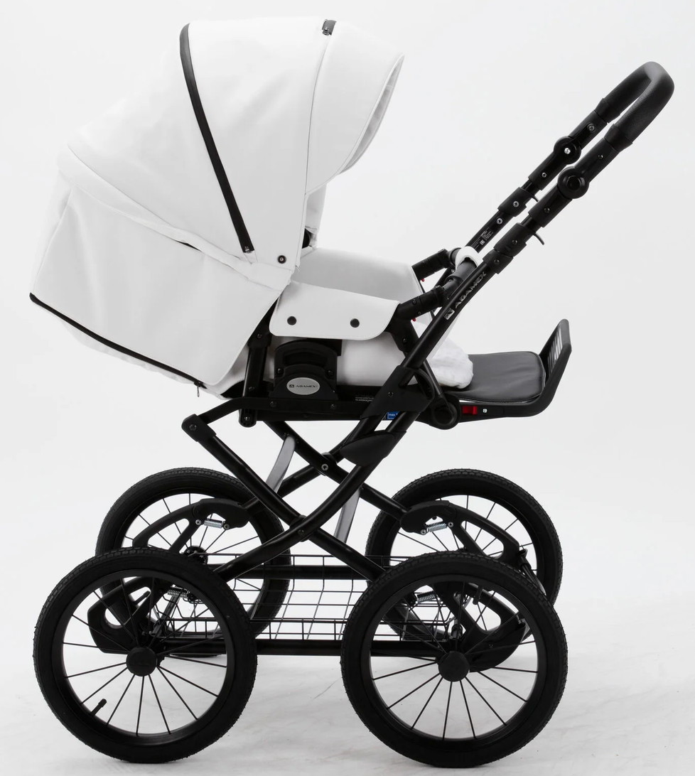 Детская коляска Adamex Porto Retro Deluxe 3 в 1 PO-SA01 (БЕЛАЯ КОЖА)