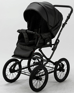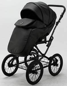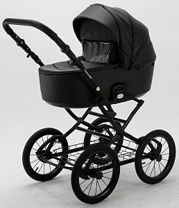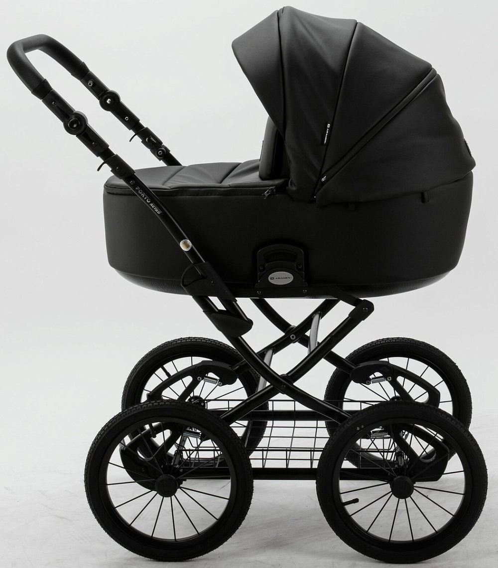 Детская коляска Adamex Porto Retro Deluxe 3 в 1 PO-SA02 (ЧЕРН.КОЖА)