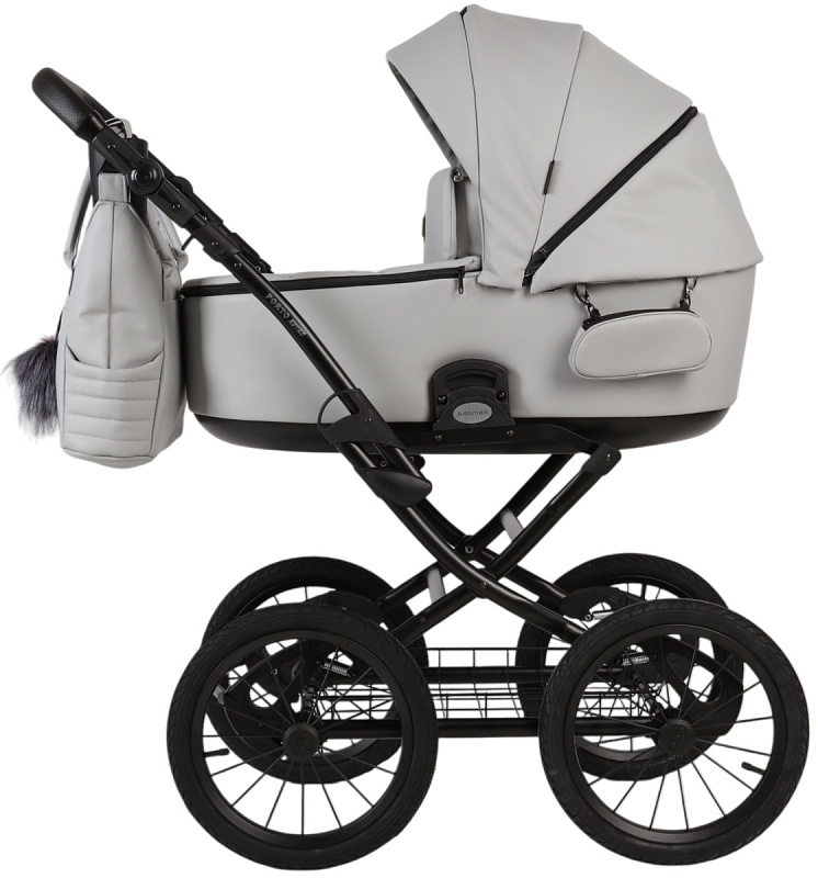 Детская коляска Adamex Porto Retro Deluxe 3 в 1 PO-SA03 BLACK (СВ. СЕРАЯ КОЖА)
