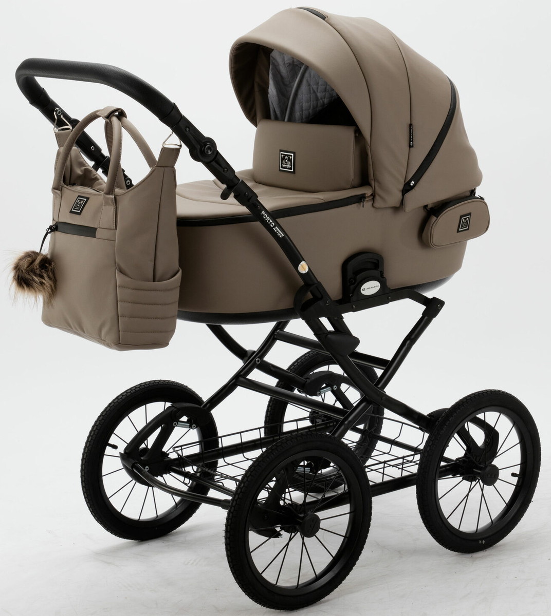 Детская коляска Adamex Porto Retro Deluxe 3 в 1 PO-SA09 (Т.БЕЖ.КОЖА)