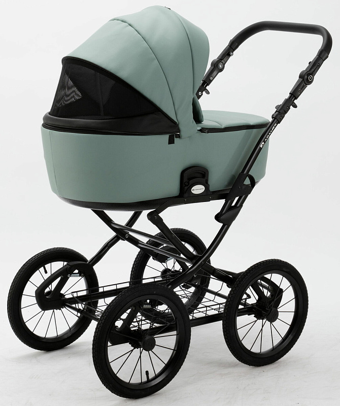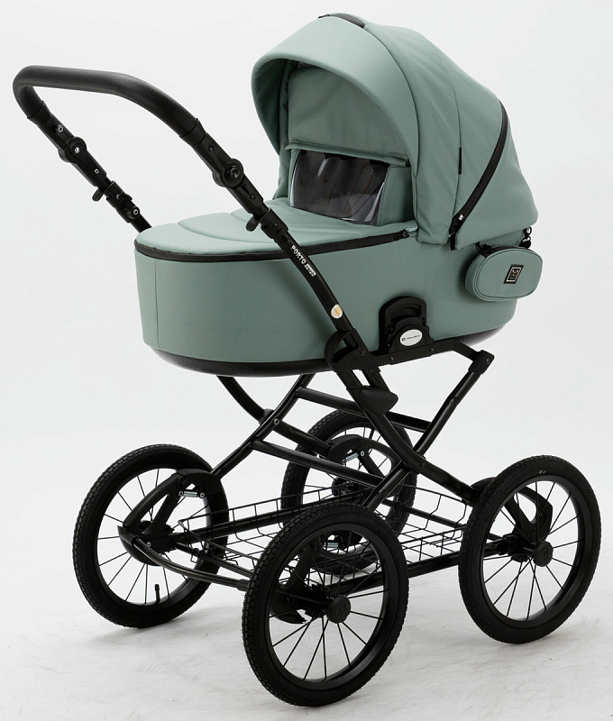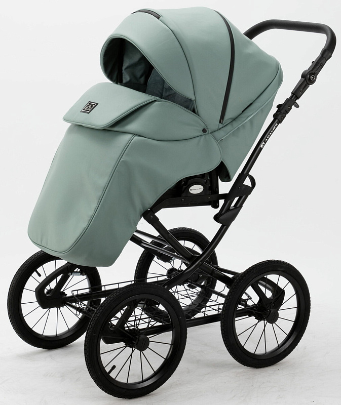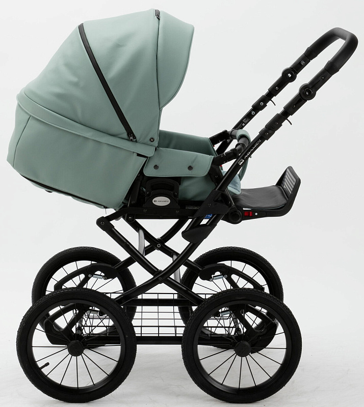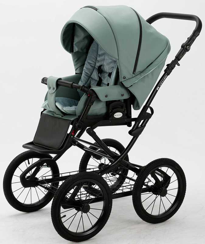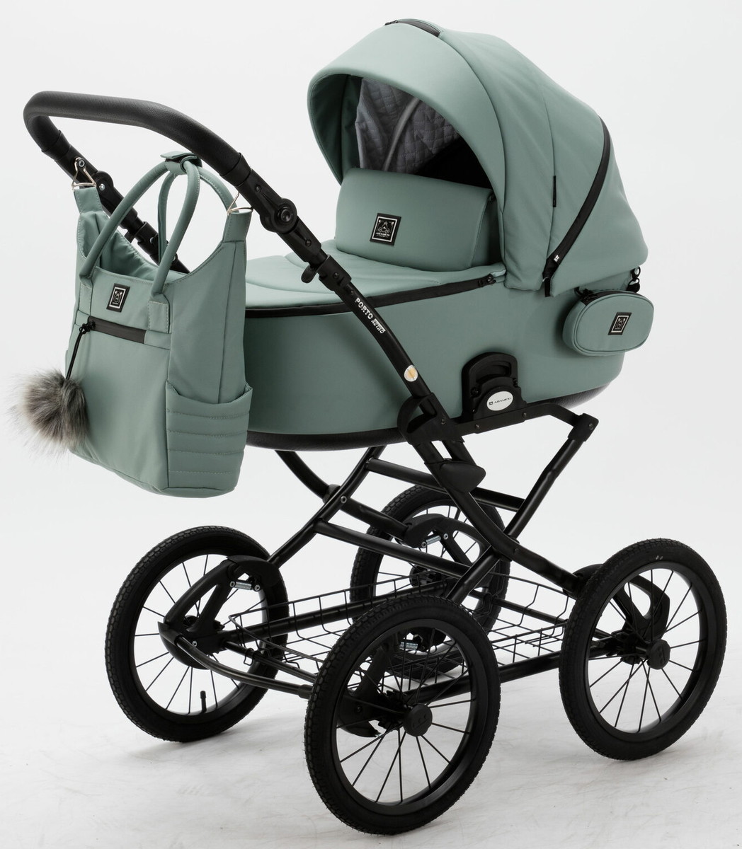 Детская коляска Adamex Porto Retro Deluxe 3 в 1 PO-SA20 (СЕРО-ЗЕЛЕНАЯ КОЖА)