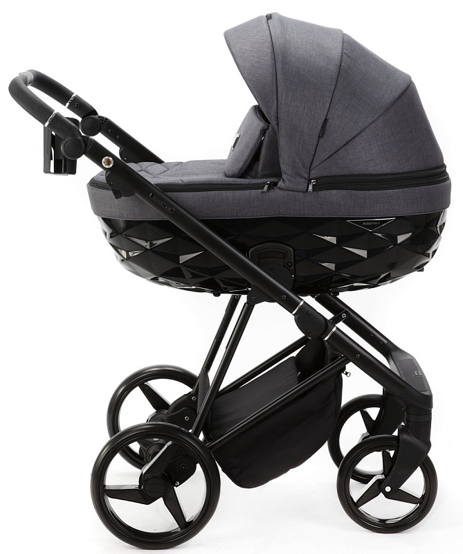 Многофункциональная детская коляска ADAMEX QUANTUM имеет большую стильную люльку, которая имеет трехмерный дизайн, регулируемый капюшон с выдвижным солнцезащитным козырьком и регулируемой вентиляцией. Сумка для мамы с аксессуарами. В нижней части люльки находится регулируемое вентиляционное отверстие. Накидка на люльку крепится с помощью молнии. Накидка оснащена ветрозащитным клапаном, под которым расположено окошко, позволяющее поддерживать зрительный контакт с ребенком.