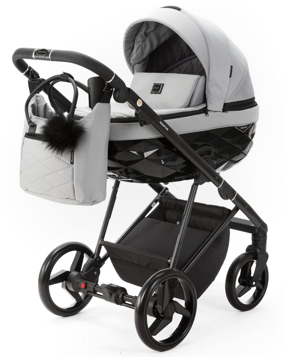 Многофункциональная детская коляска ADAMEX QUANTUM имеет большую стильную люльку, которая имеет трехмерный дизайн, регулируемый капюшон с выдвижным солнцезащитным козырьком и регулируемой вентиляцией. Сумка для мамы с аксессуарами. В нижней части люльки находится регулируемое вентиляционное отверстие. Накидка на люльку крепится с помощью молнии. Накидка оснащена ветрозащитным клапаном, под которым расположено окошко, позволяющее поддерживать зрительный контакт с ребенком.