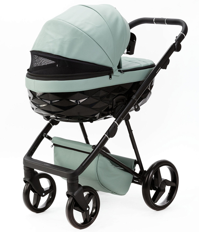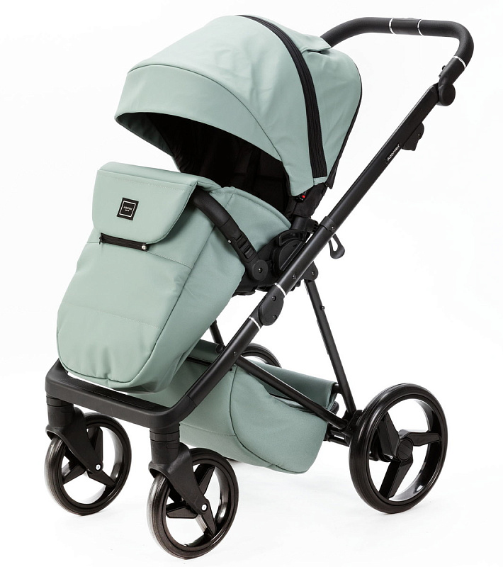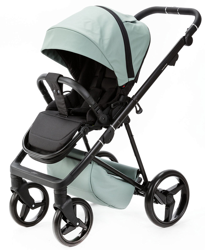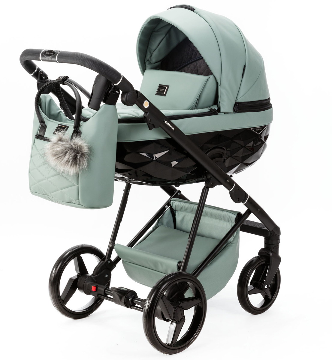 Детская коляска Adamex Quantum Deluxe 2 в 1 Q-SA20-K (СЕРО-ЗЕЛЕН.КОЖА 100%)