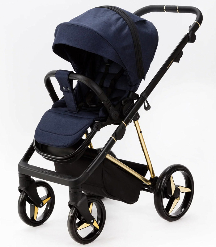 Детская коляска Adamex Quantum Special Edition 2 в 1 Q-TK677 (Т.СИНИЙ+ЗОЛОТО РАМА)