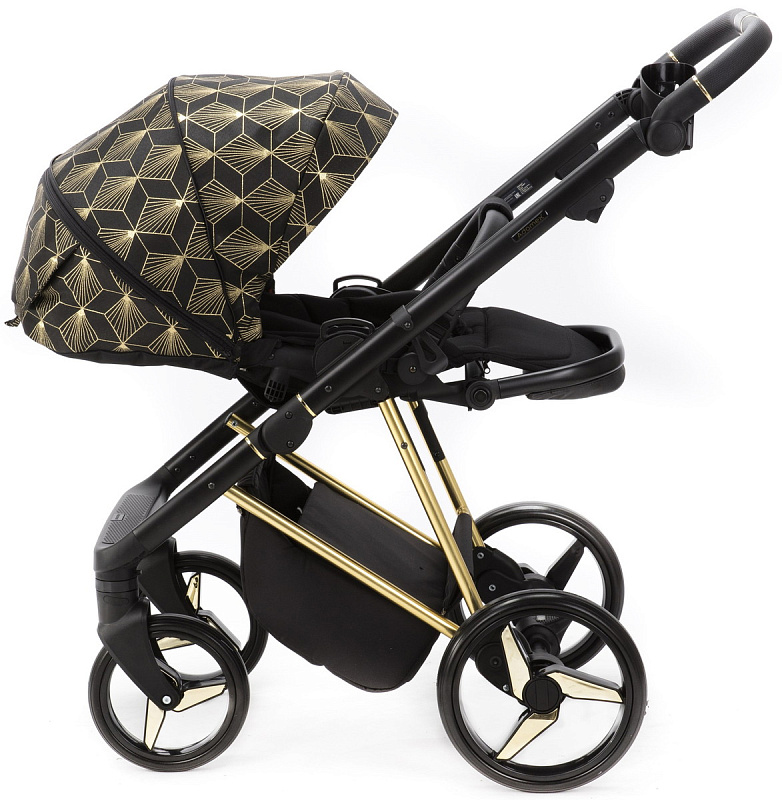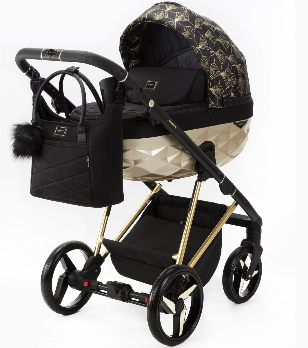 Детская коляска Adamex Quantum Star 3 в 1 Q-STAR58 (ЧЕРНЫЙ+ЗОЛОТОЙ ОРНАМЕНТ+ЗОЛОТО ДНО+ЗОЛОТО РАМА)