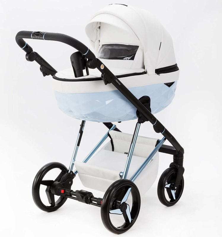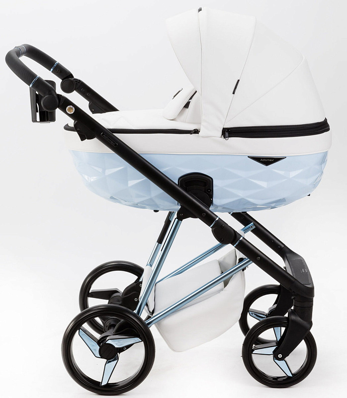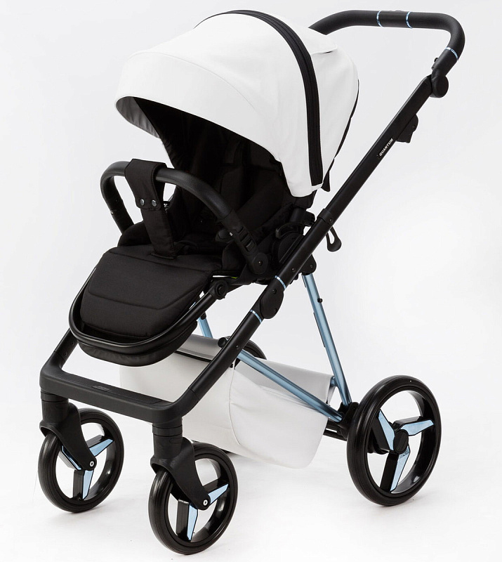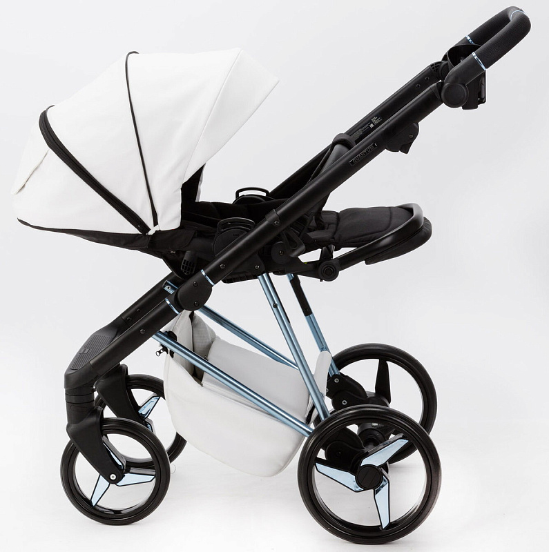 Детская коляска Adamex Quantum Superstar Deluxe 2 в 1 Q-STAR138-K (БЕЛ.КОЖА+ГОЛУБ.ДНО+ГОЛУБ.РАМА)