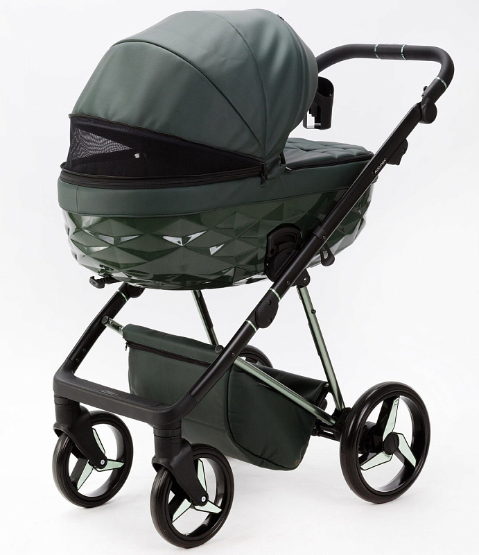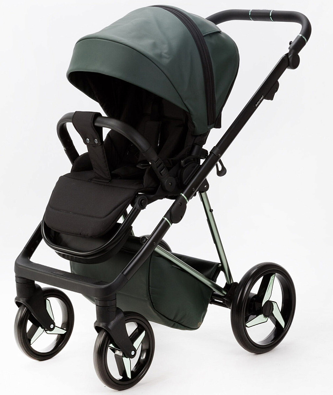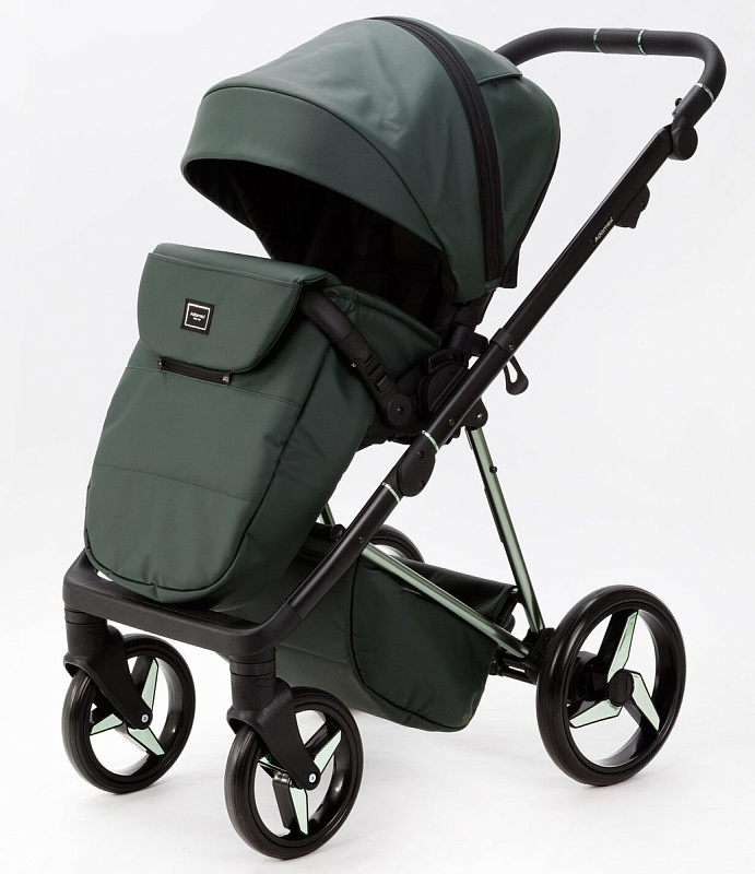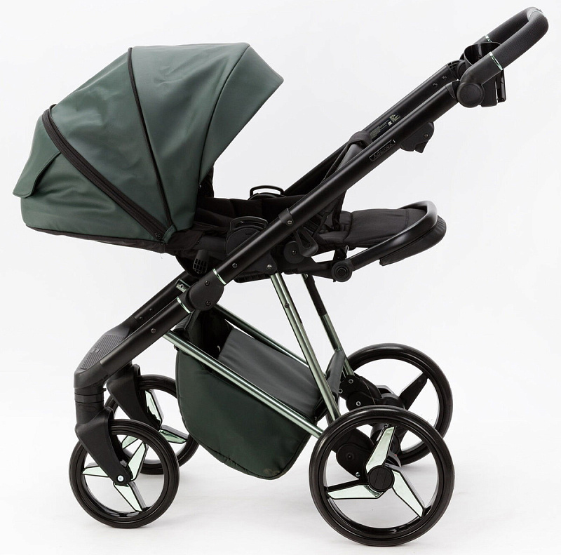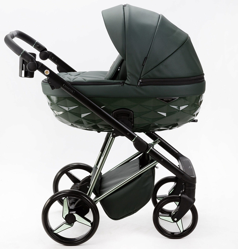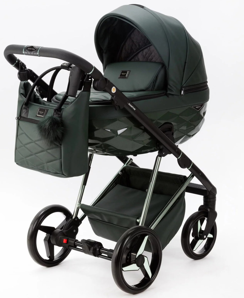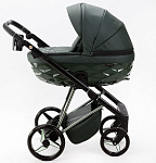 Детская коляска Adamex Quantum Superstar Deluxe 2 в 1 Q-STAR140-K (Т.ЗЕЛЕН.КОЖА+Т.ЗЕЛЕН.ДНО+ХРОМ.РАМА)