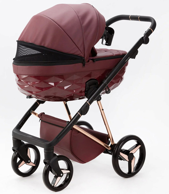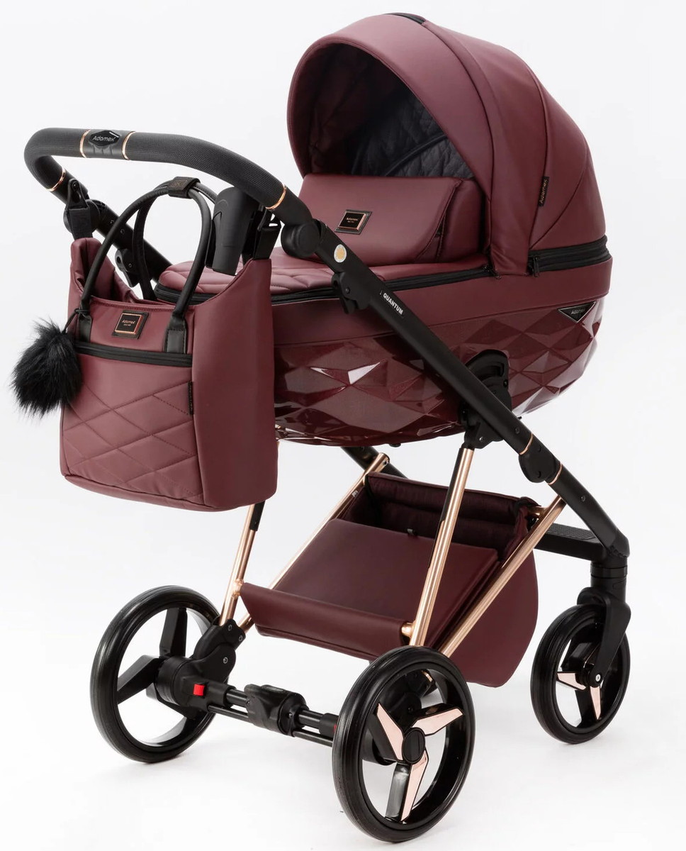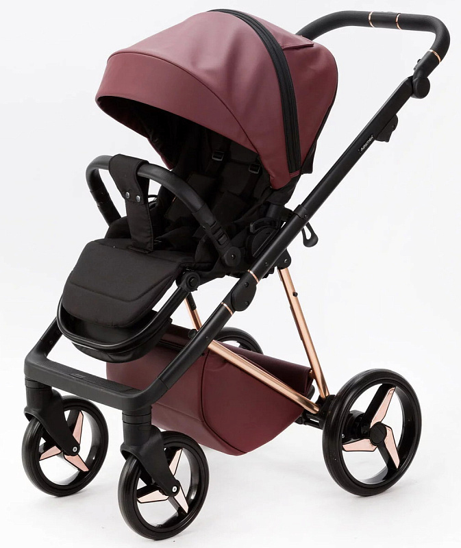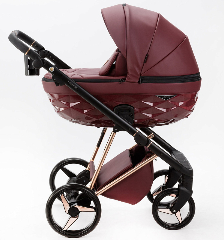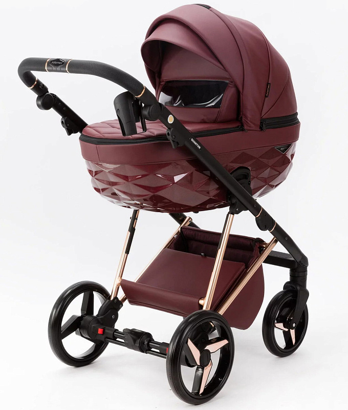Детская коляска Adamex Quantum Superstar Deluxe 3 в 1 Q-STAR141-K (БОРДОВ.КОЖА+БОРДОВ.ДНО+РОЗОВ.ЗОЛОТО.РАМА)