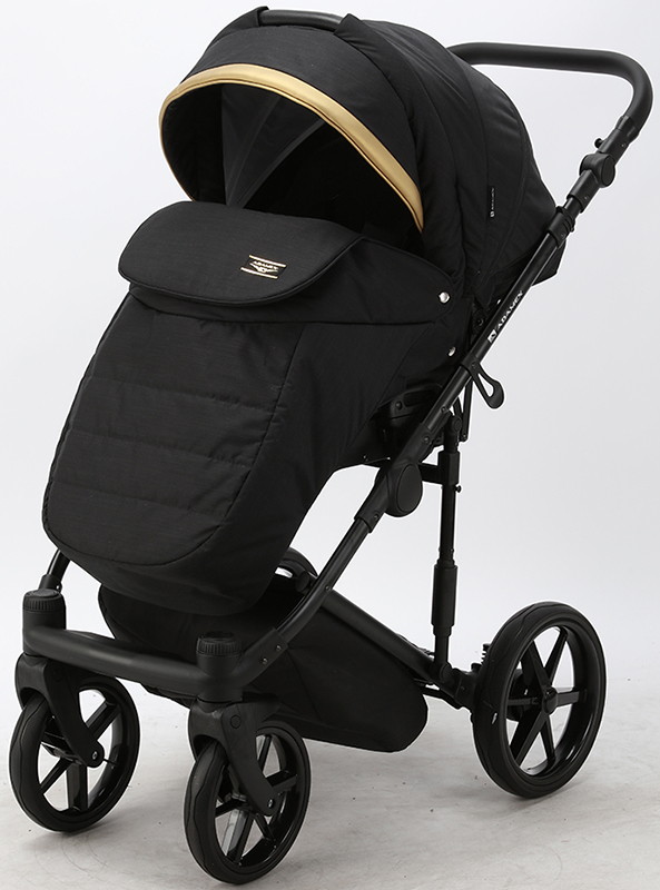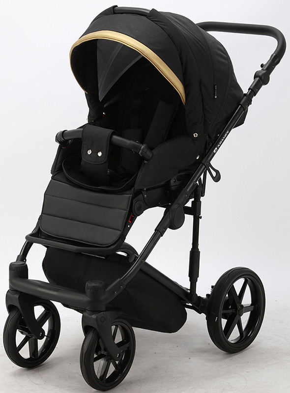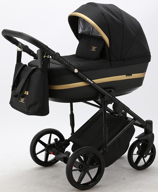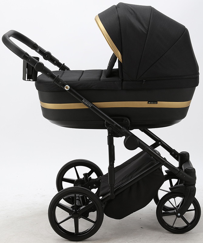 Детская коляска Adamex Rimini 2 в 1 RI01-TIP ЧЕРНЫЙ+ЧЕРН.КОЖА+ЗОЛОТО ОТДЕЛКА