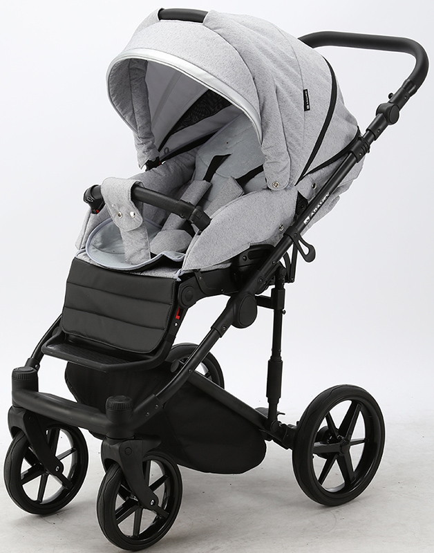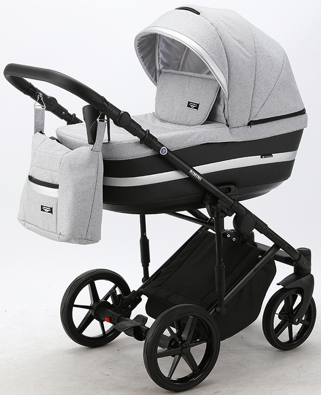Детская коляска Adamex Rimini 2 в 1 RI13-LUX СВ.СЕР.БЕРЕЗКА+ЧЕРН.КОЖА+СЕРЕБР.ОТДЕЛКА