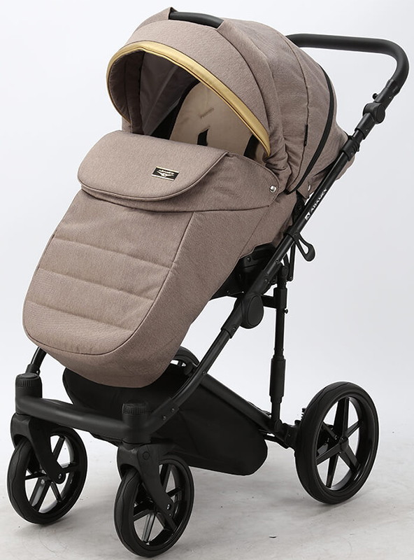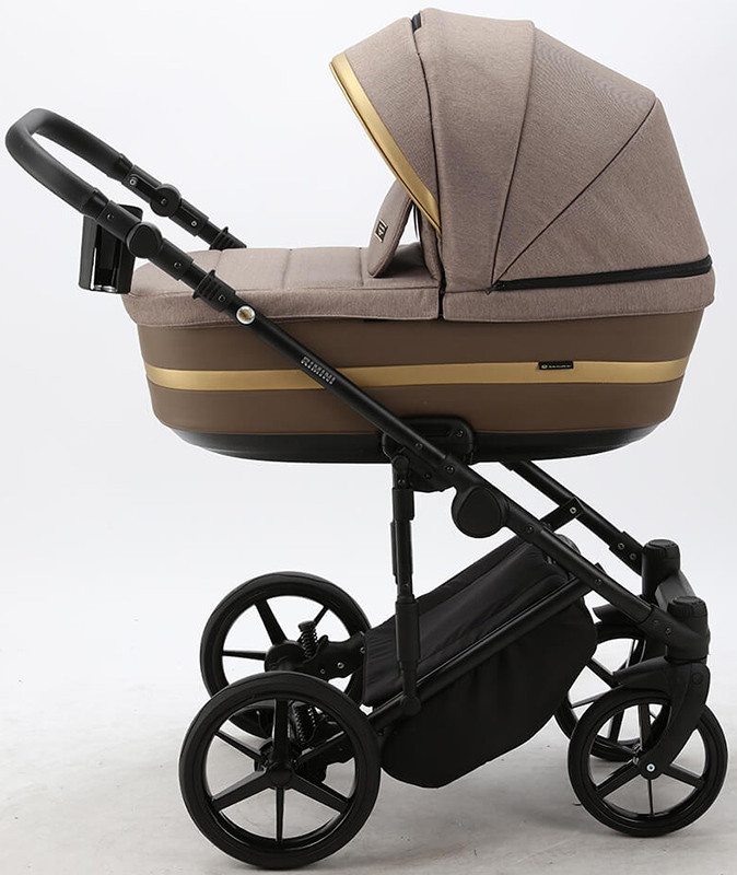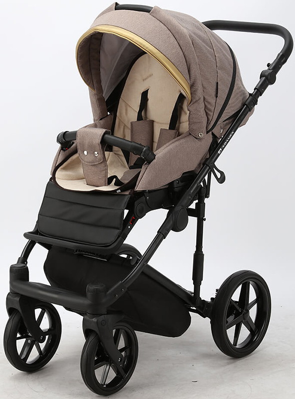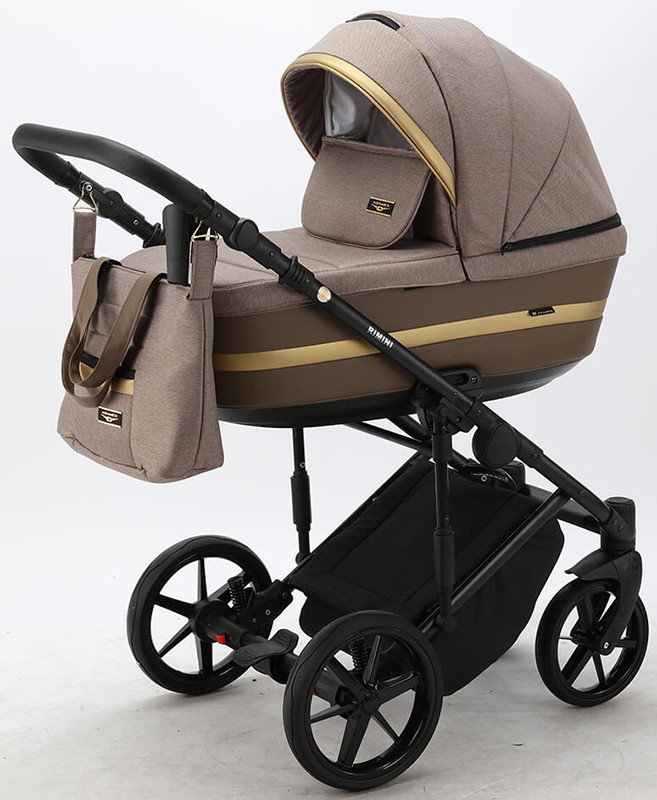 Детская коляска Adamex Rimini 2 в 1 RI15-TIP БЕЖ+КОРИЧНЕВ.КОЖА+ЗОЛОТО ОТДЕЛКА