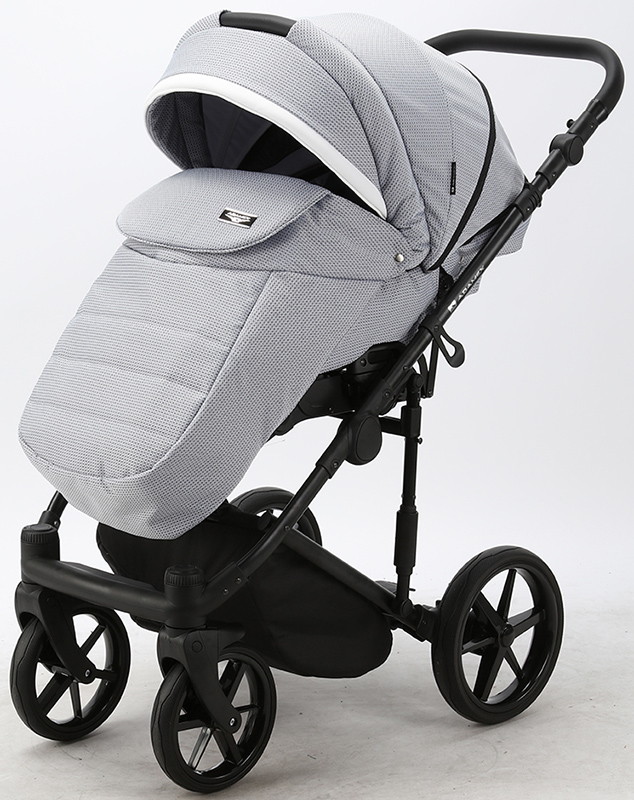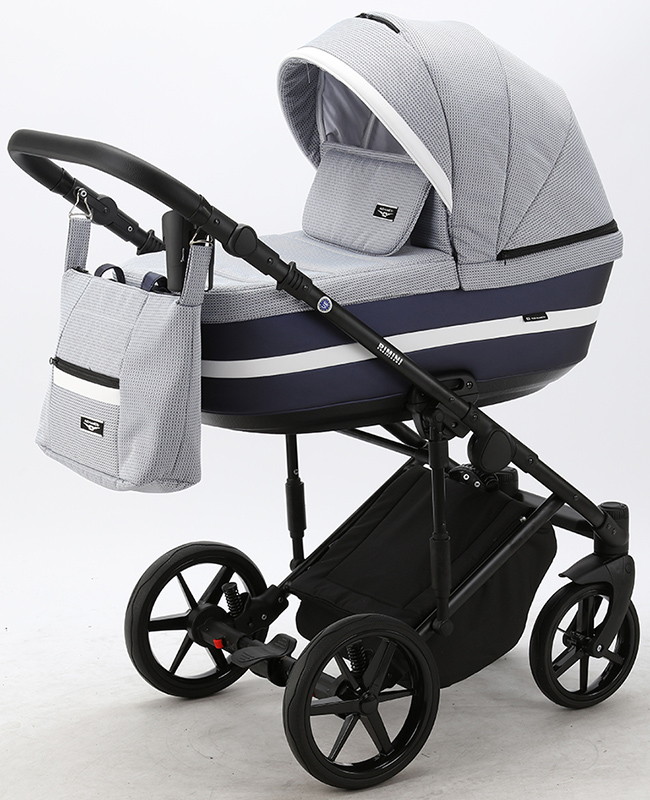 Детская коляска Adamex Rimini 2 в 1 RI27-LUX ГОЛУБ.ЖАККАРД+СИН.ПЕРЛ.КОЖА+БЕЛ.ОТДЕЛКА