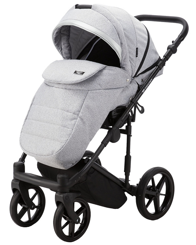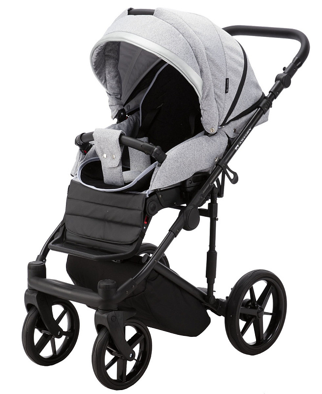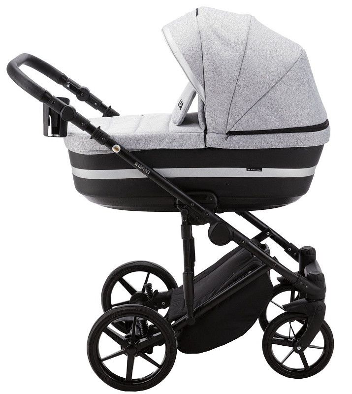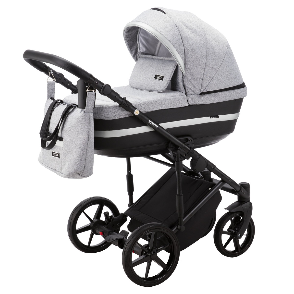 Детская коляска Adamex Rimini 2 в 1 RI32B LUX (СЕР.ЖАККАРД+ЧЕРН.КОЖА+СЕРЕБР.ОТДЕЛКА)