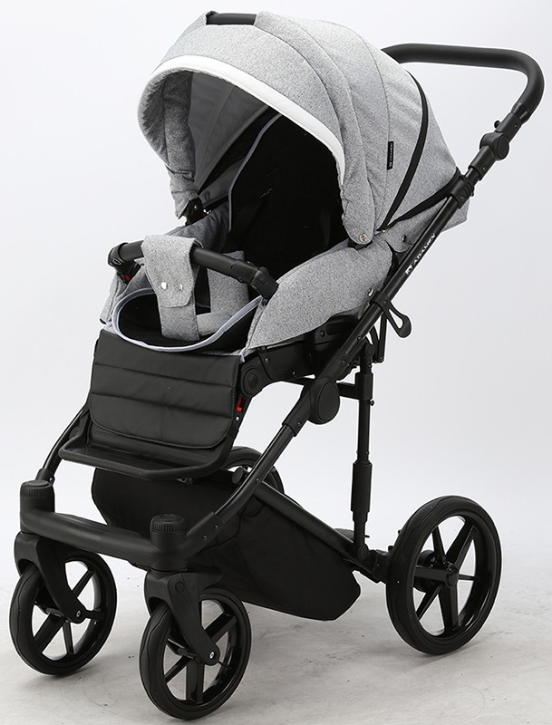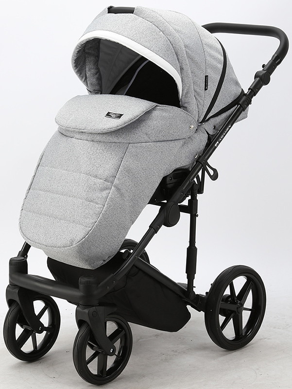Детская коляска Adamex Rimini 2 в 1 RI32-LUX СЕР.ЖАККАРД+ЧЕРН.КОЖА+БЕЛ.ОТДЕЛКА