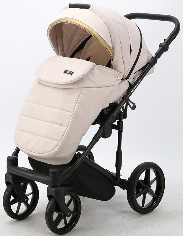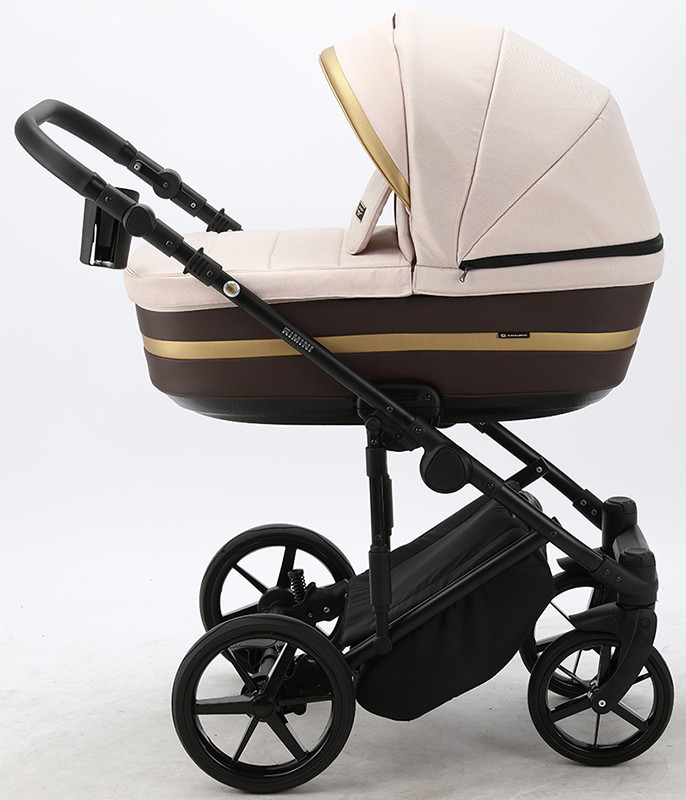 Детская коляска Adamex Rimini 2 в 1 RI84-TIP СВ.БЕЖЕВО-РОЗОВ+Т.КОРИЧНЕВ.КОЖА+ЗОЛОТО.ОТДЕЛКА
